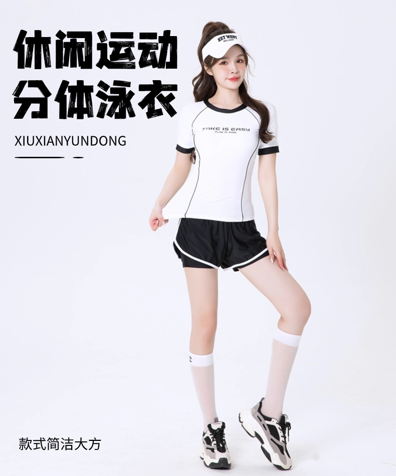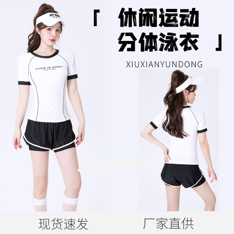24 년 새 스포츠 스플릿 반팔 반바지 수영복 캐주얼 편안한 전문 훈련 수영복 여성 도매