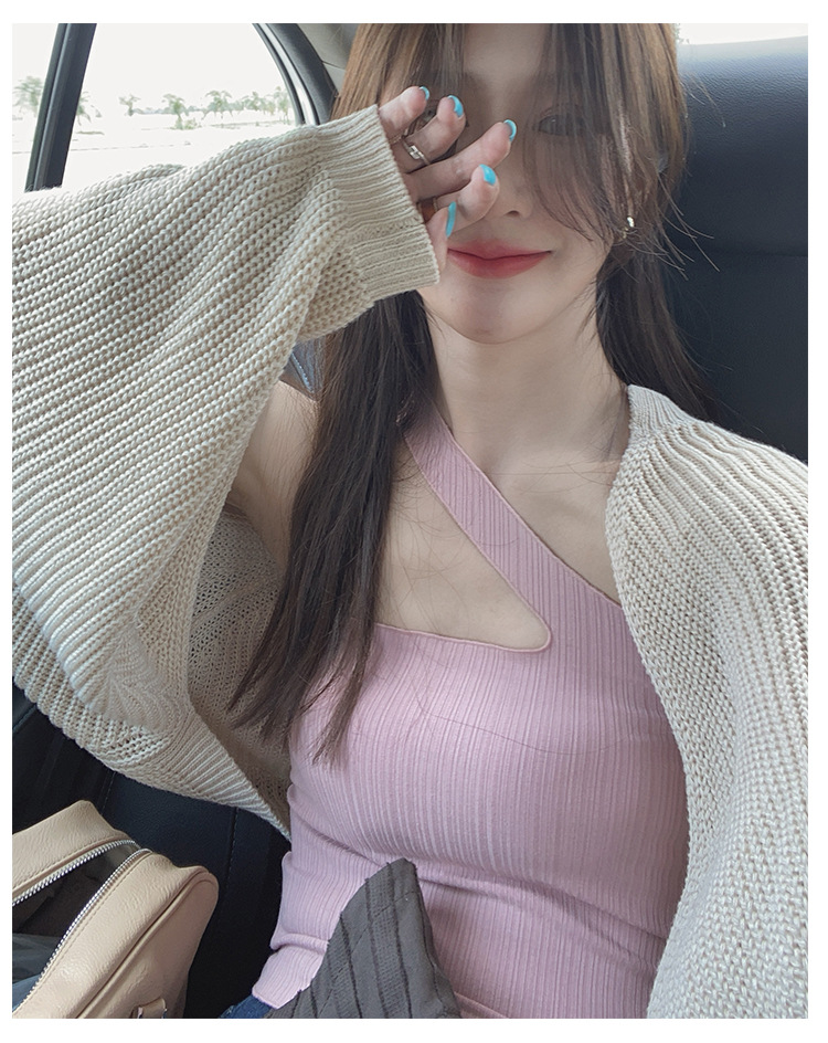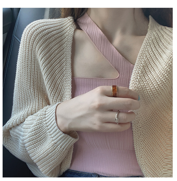 게으른 스타일의 태양 보호 여성용 니트 카디건 코트 봄과 가을 새로운 디자인 다재다능한 짧은 목도리 겉옷 탑