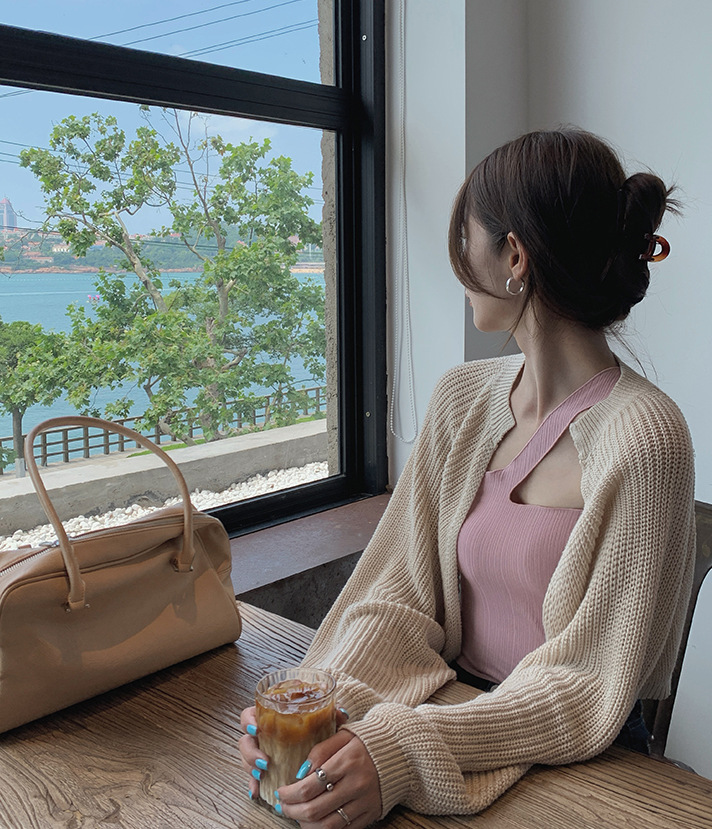 게으른 스타일의 태양 보호 여성용 니트 카디건 코트 봄과 가을 새로운 디자인 다재다능한 짧은 목도리 겉옷 탑스토어 가기