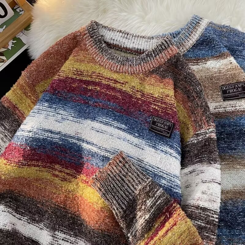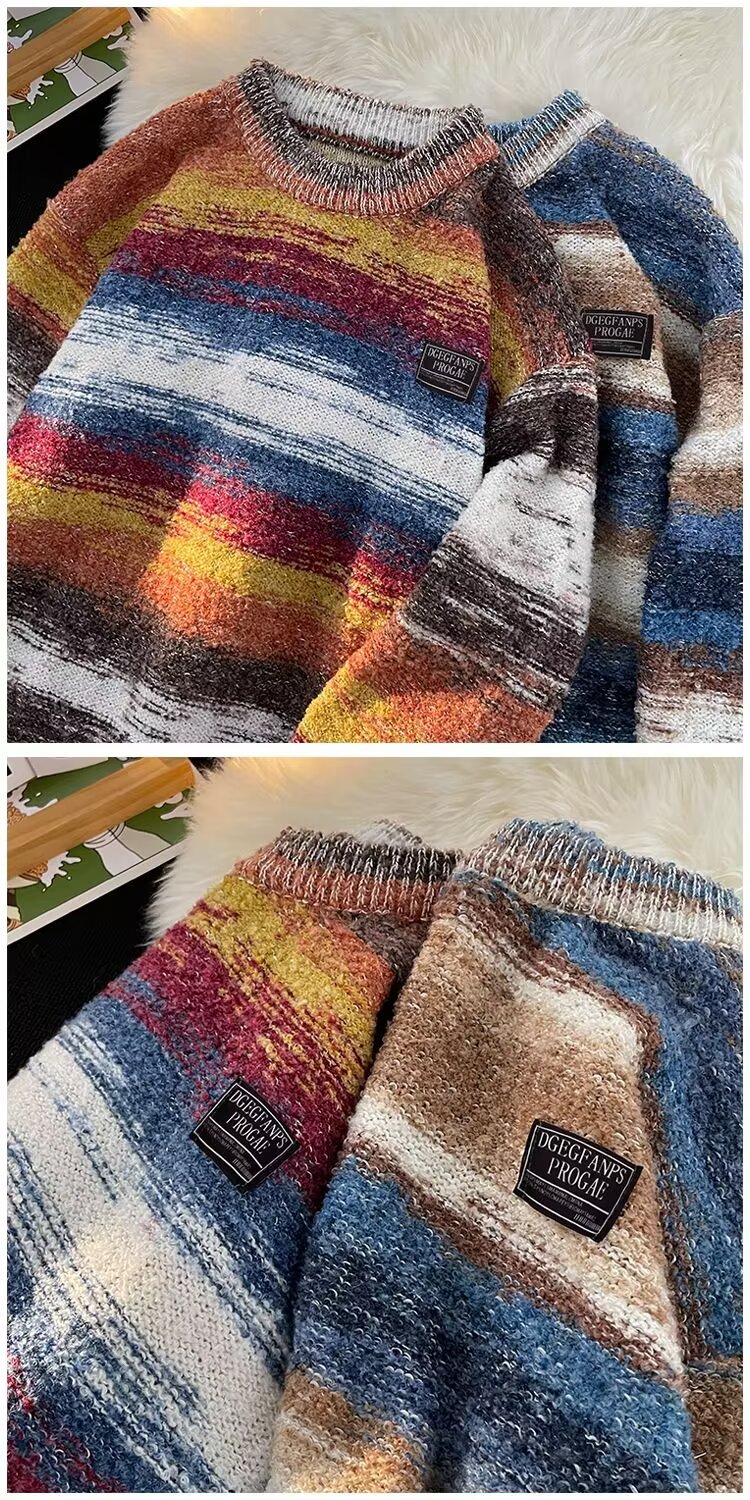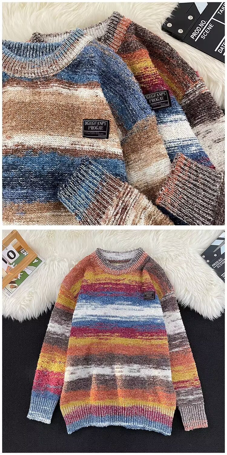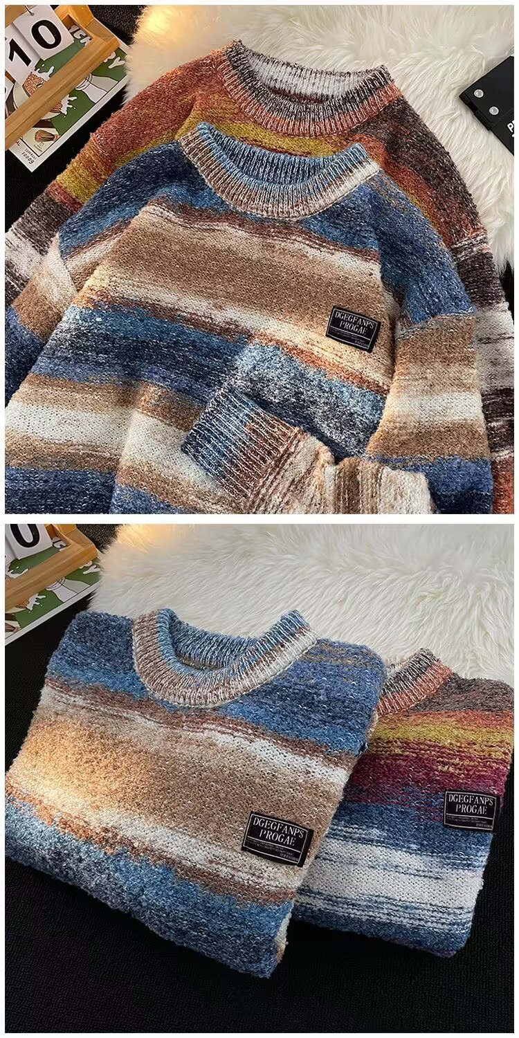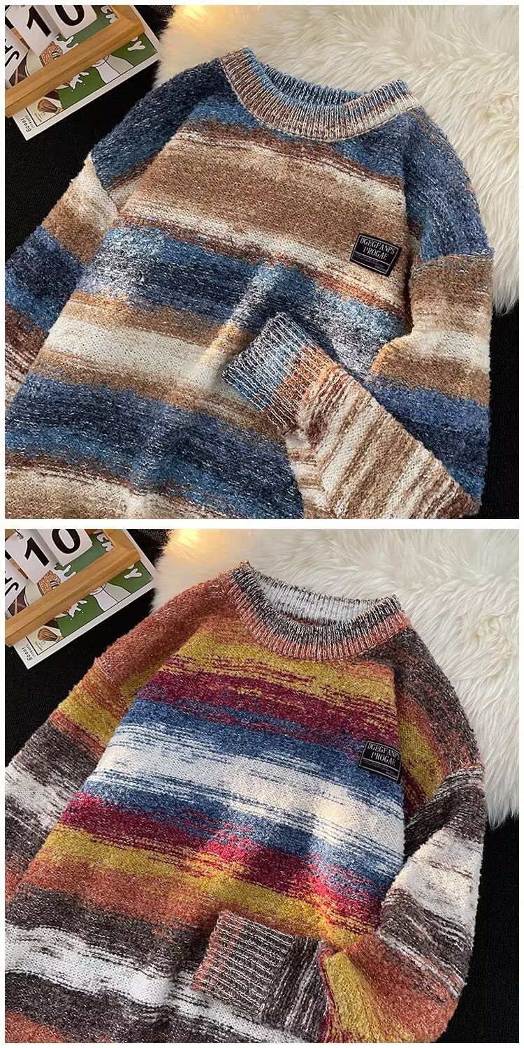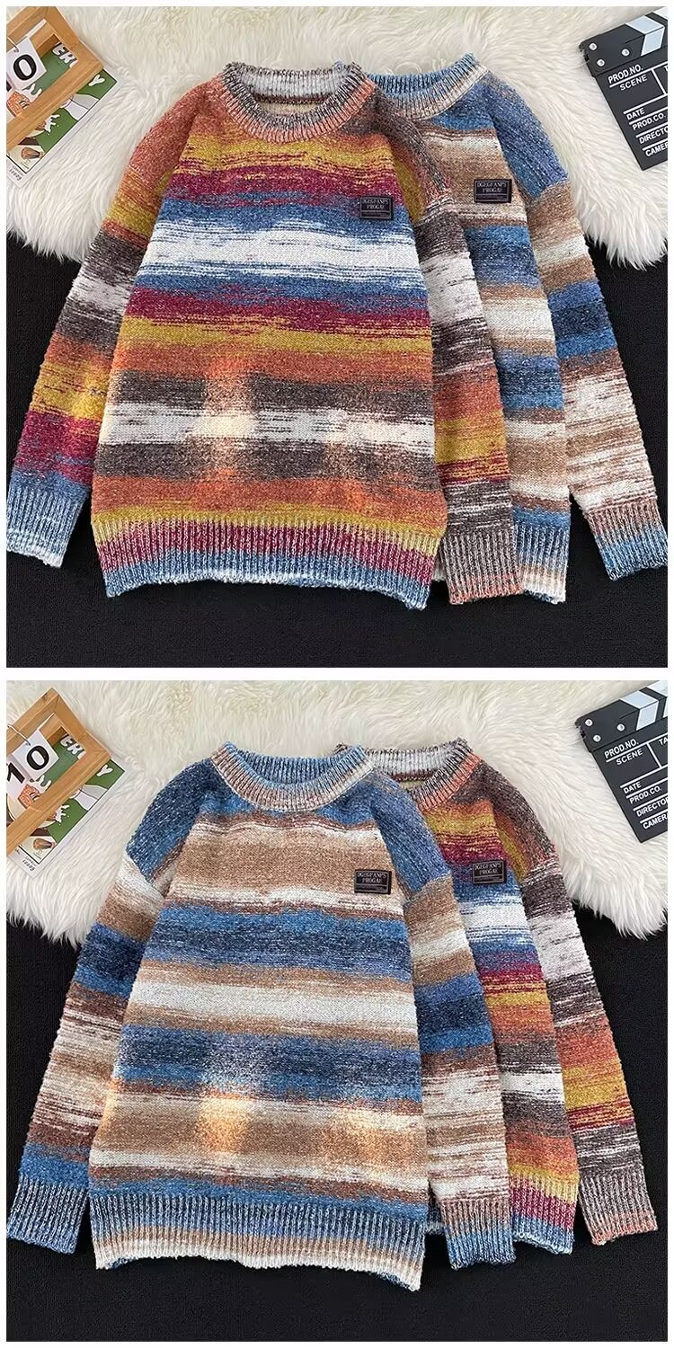 게으른 스타일의 트렌디 한 브랜드 스웨터 남성 가을과 겨울 일본식 느슨한 복고풍 커플 스트라이프 스웨터 바닥 속옷 스웨터