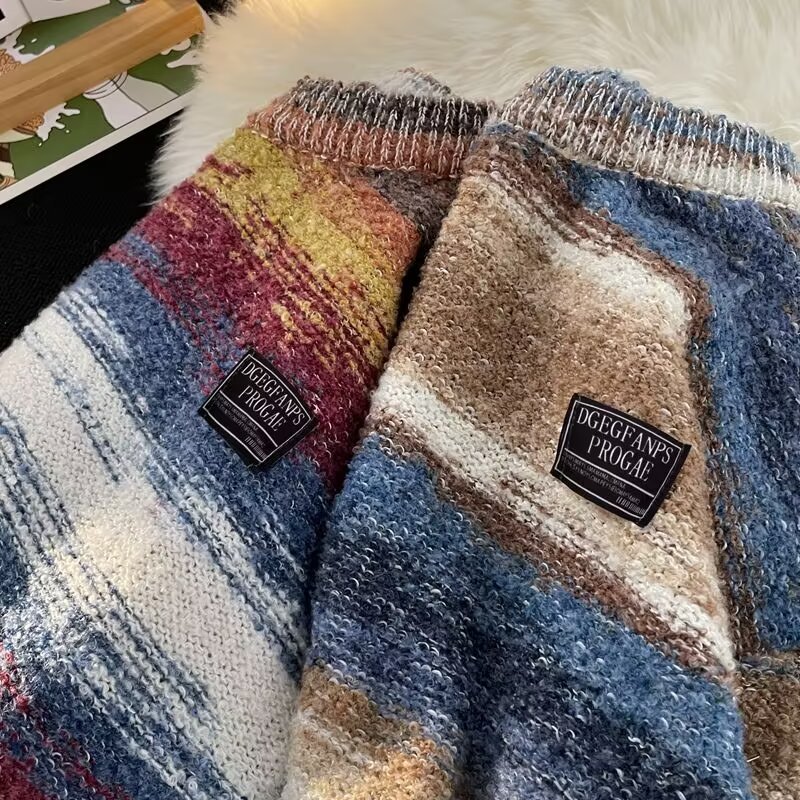 게으른 스타일의 트렌디 한 브랜드 스웨터 남성 가을과 겨울 일본식 느슨한 복고풍 커플 스트라이프 스웨터 바닥 속옷 스웨터스토어 가기