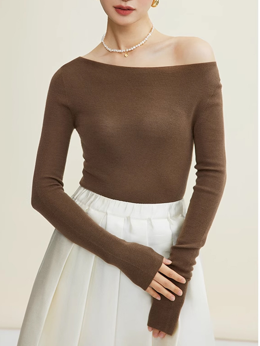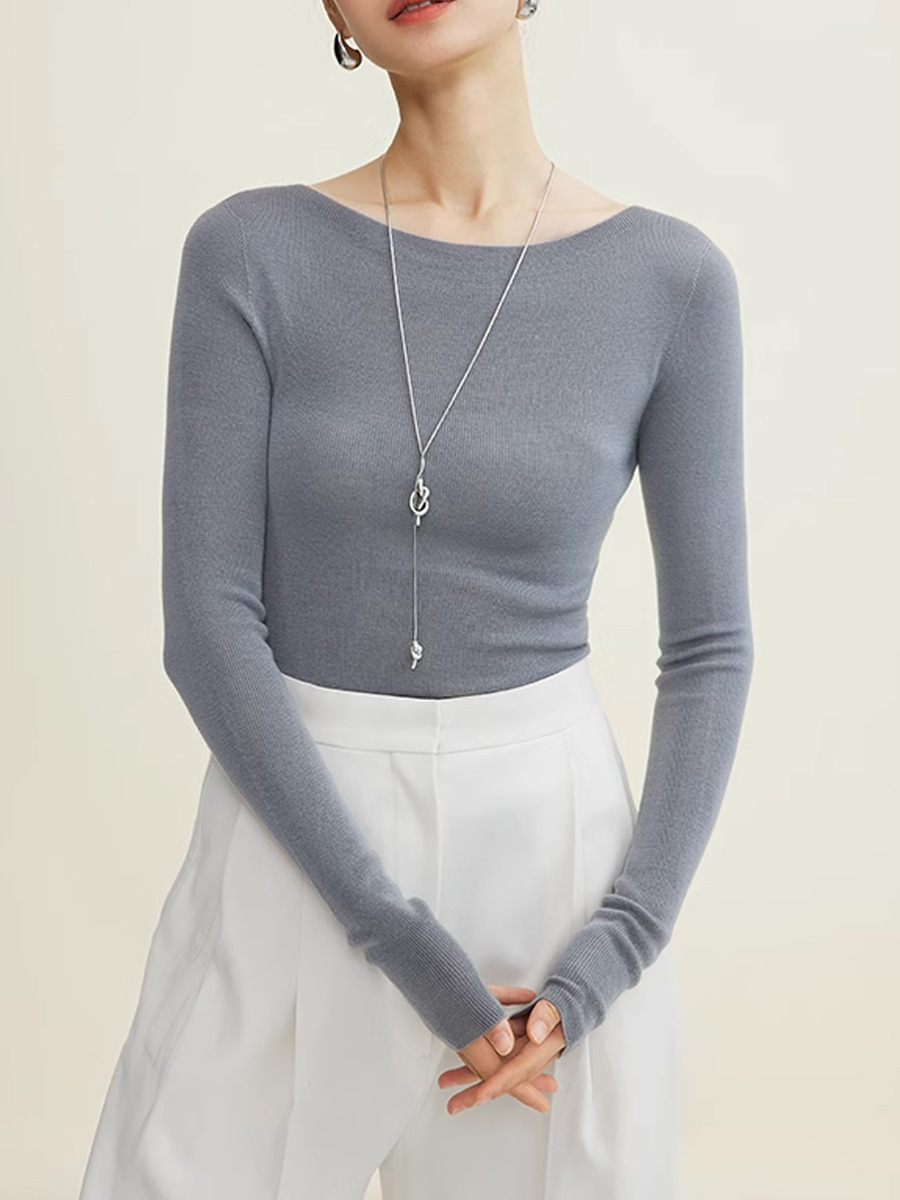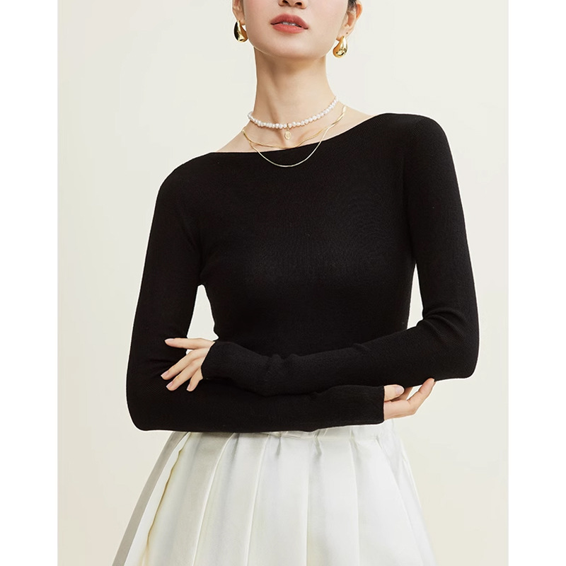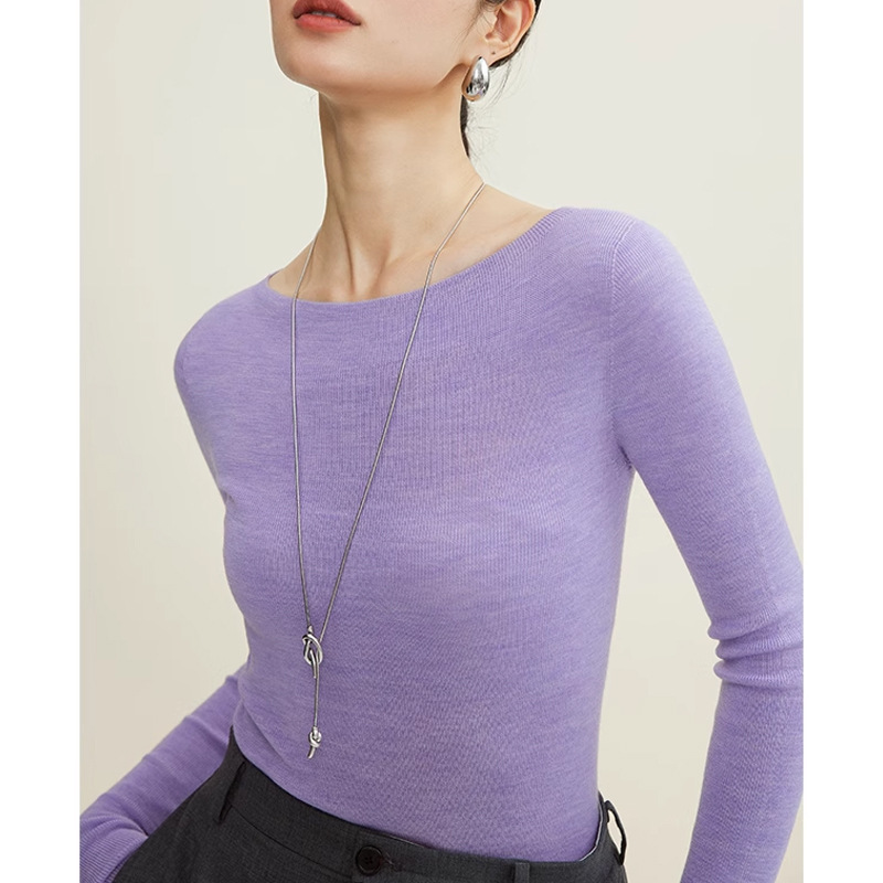 18 핀 양지 100% 순수 양모 원활한 오프 넥 얇은 언더 셔츠 슬림 니트 스웨터