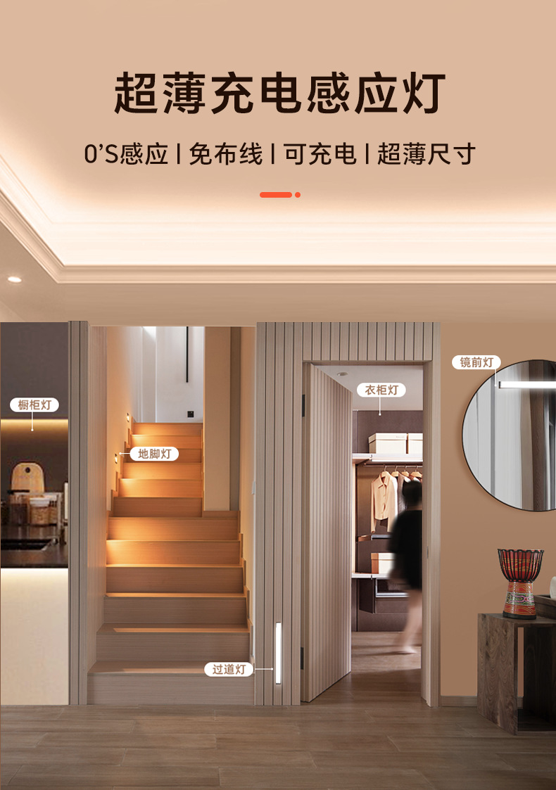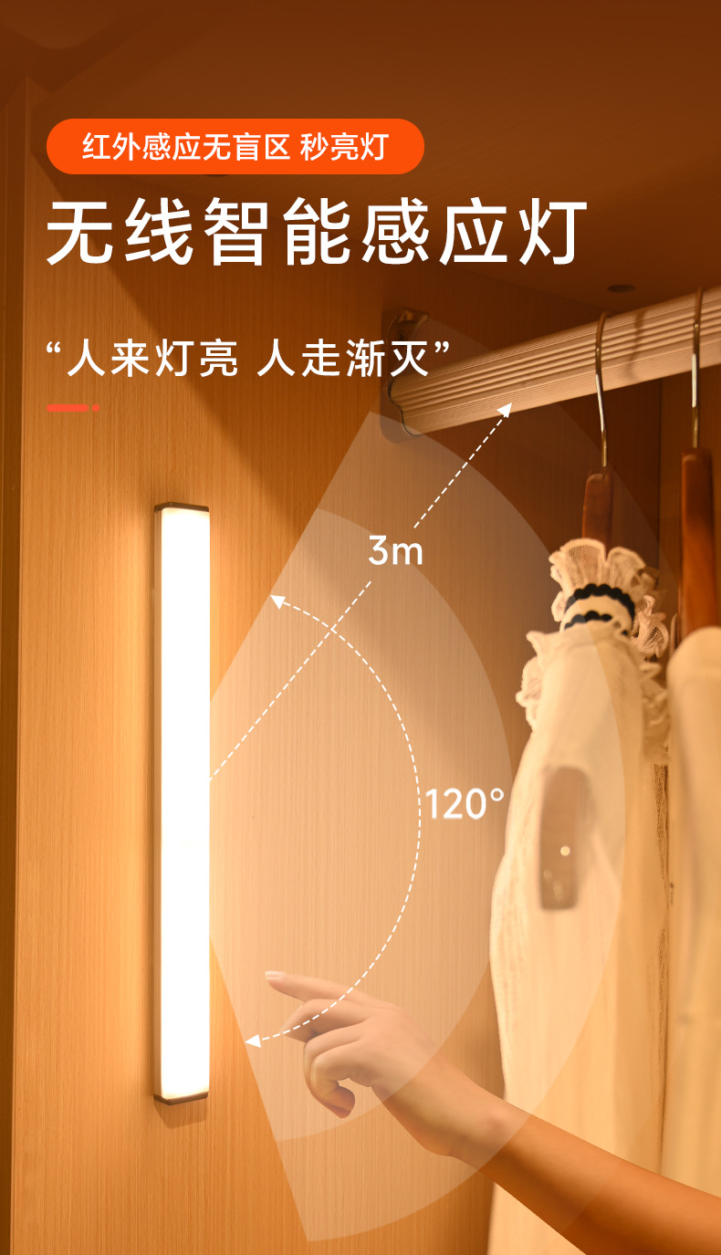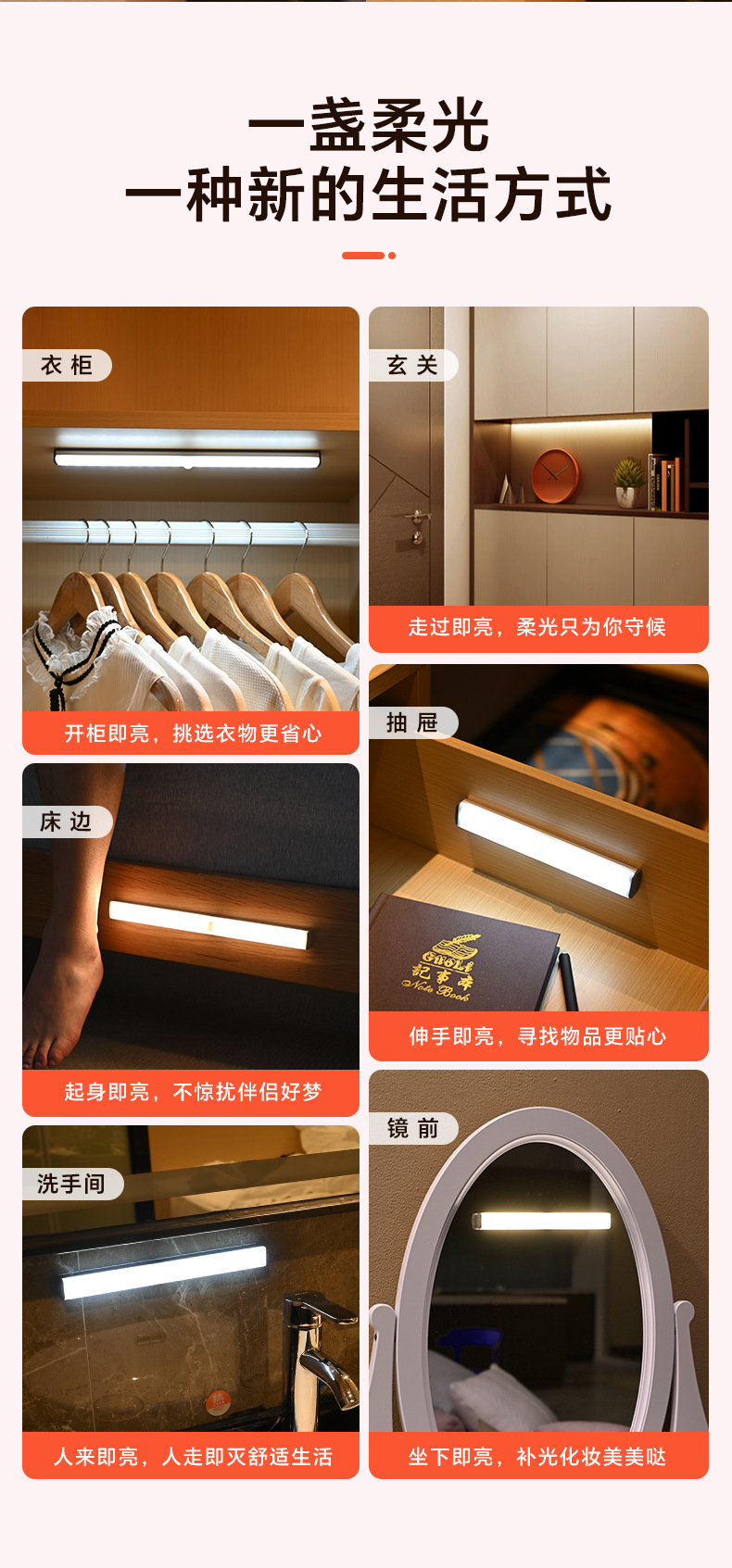 스마트 무선 충전 인체 유도 야간 조명 배선-무료 홈 나이트 통로 옷장 캐비닛 LED 라이트 바