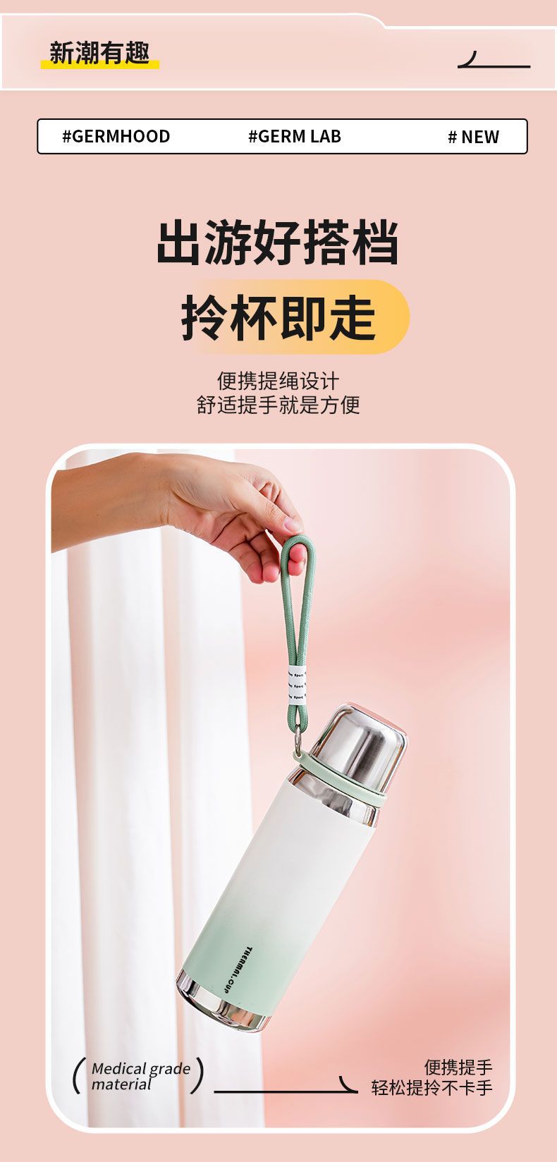 높은 찾고 316 스테인레스 스틸 대용량 진공 컵 패션 야외 휴대용 로프 물 컵 학생 여행 컵