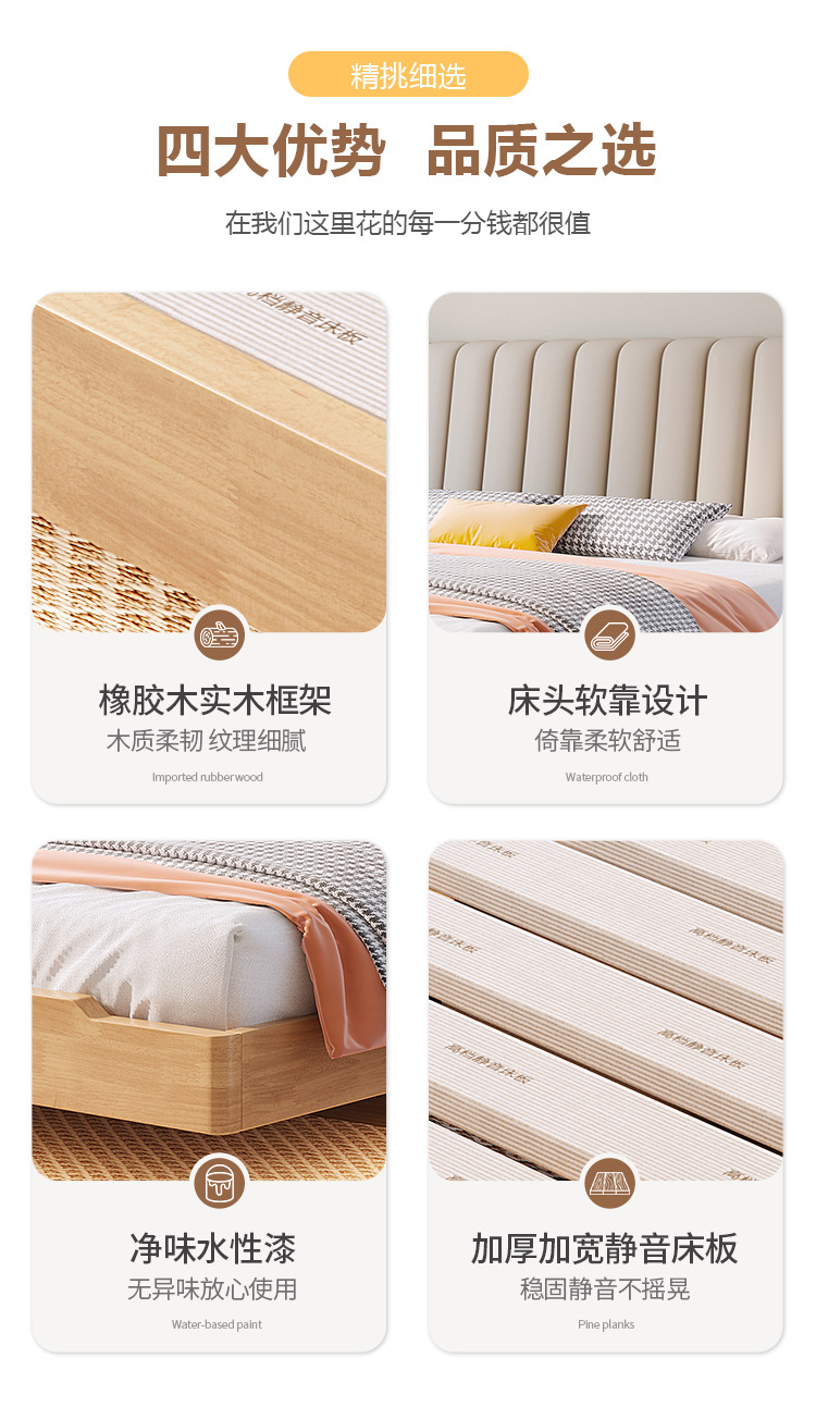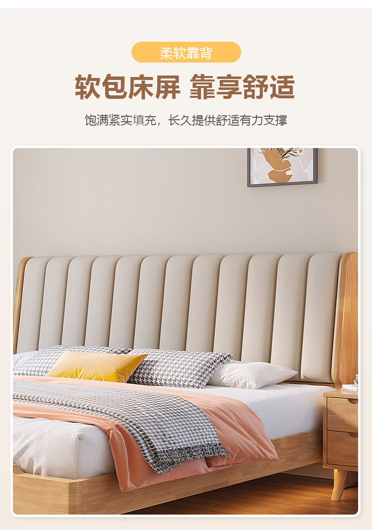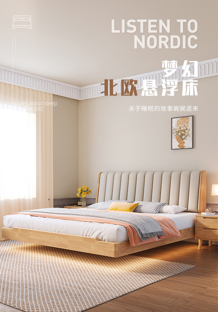 북유럽 간단한 부드러운 서스펜션 침대 단단한 나무 1.5 m 1.8 더블 침대 작은 아파트 큰 침대 웨딩 침대 도매스토어 가기