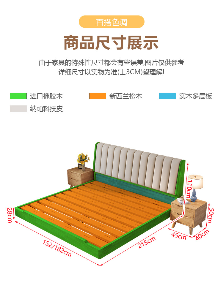 • 침대 + 20cm 매트리스 + 2 침대 옆 테이블