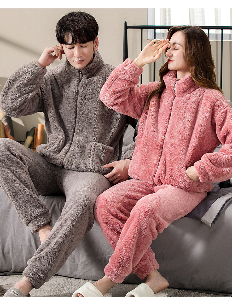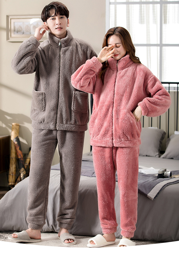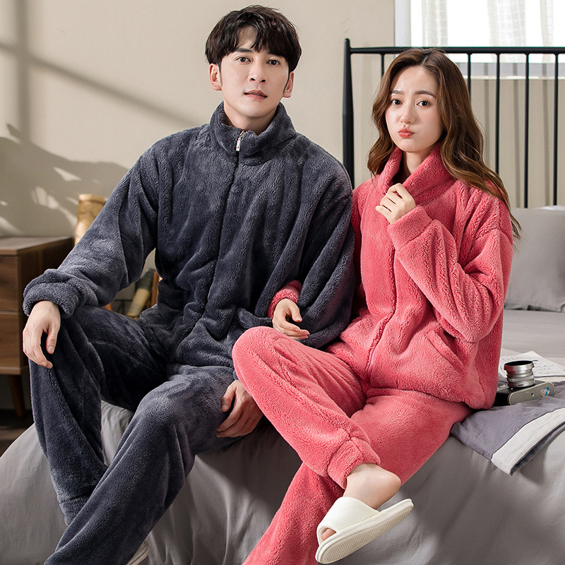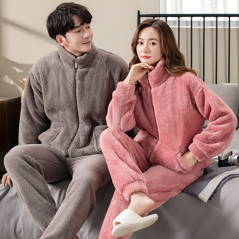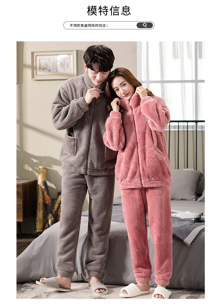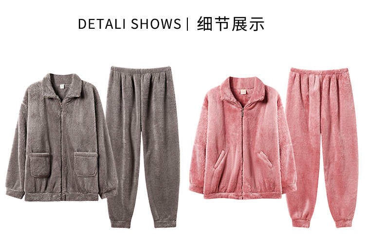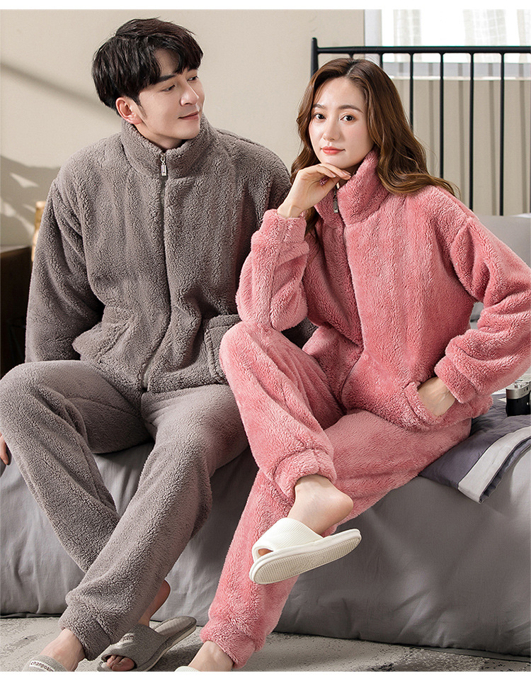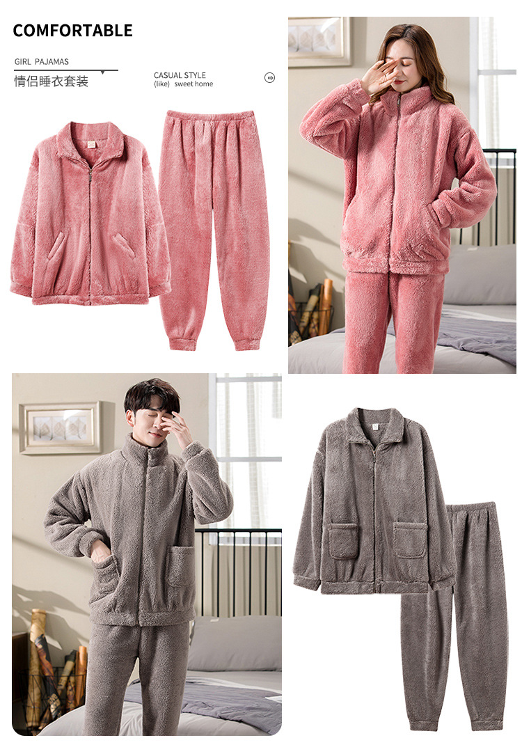 산호 양털 커플 잠옷 여성 가을과 겨울 두꺼운 플란넬 남성 캐주얼 간단한 지퍼 겉옷 홈웨어