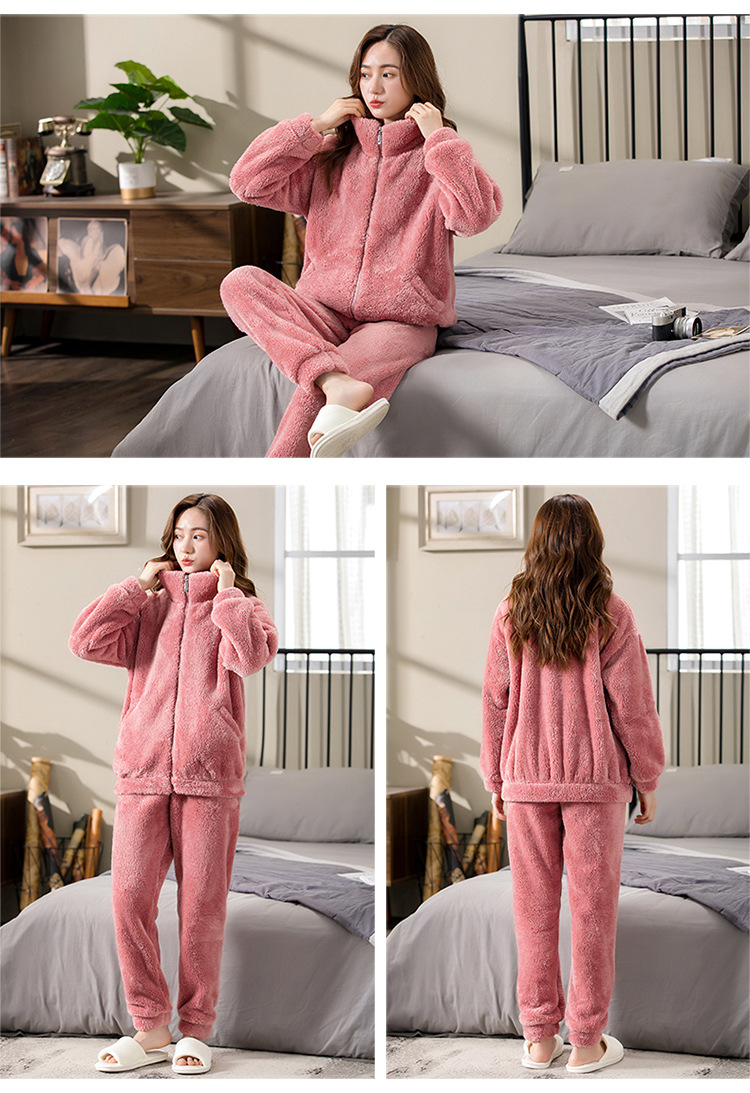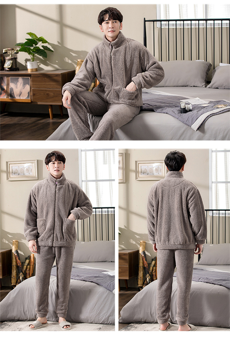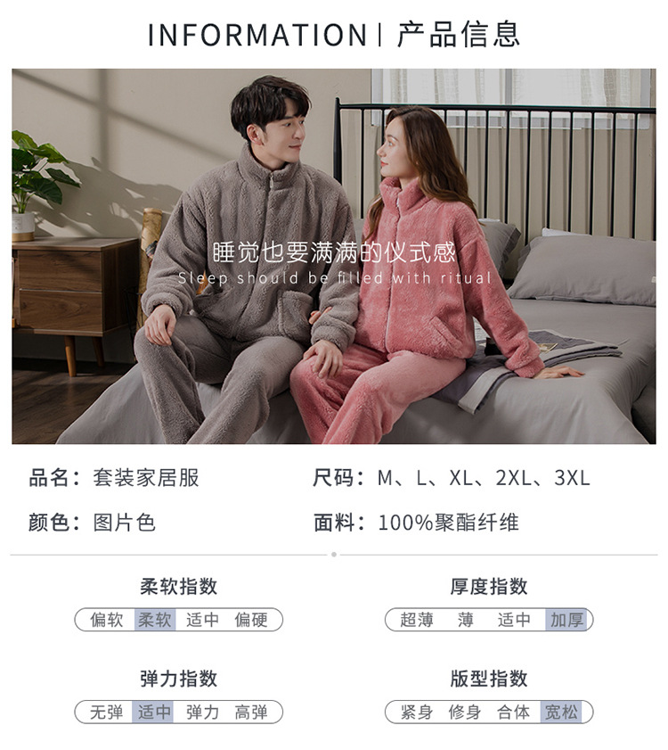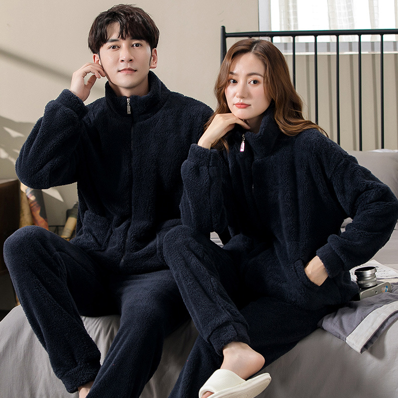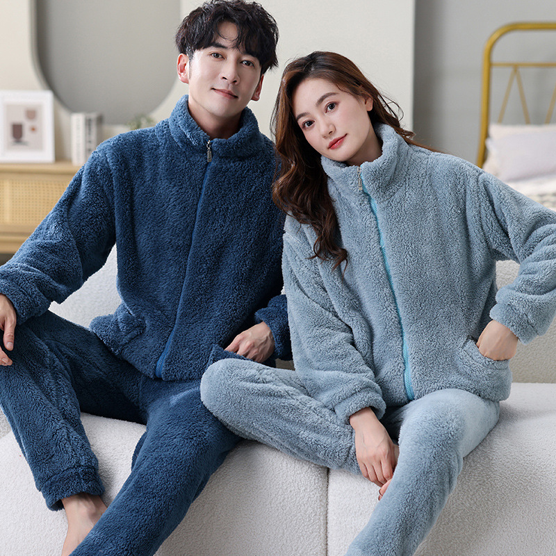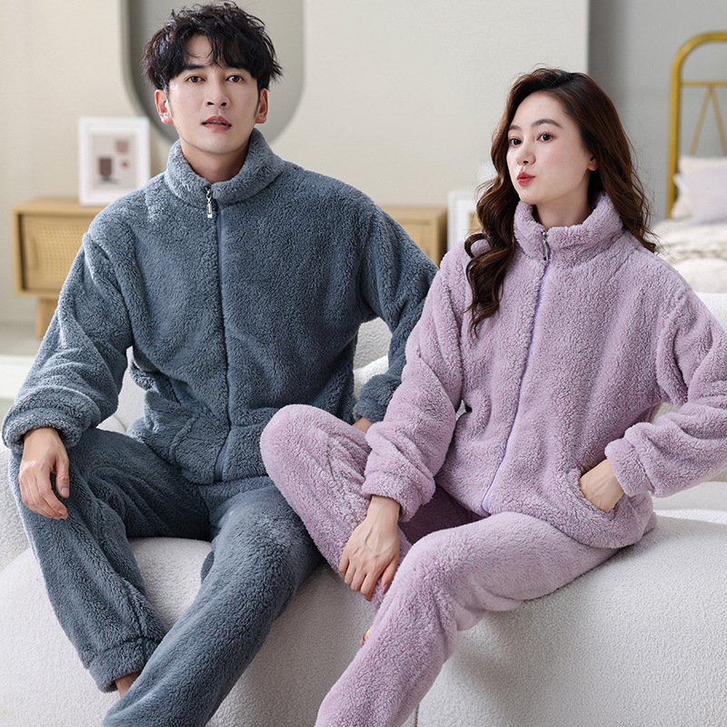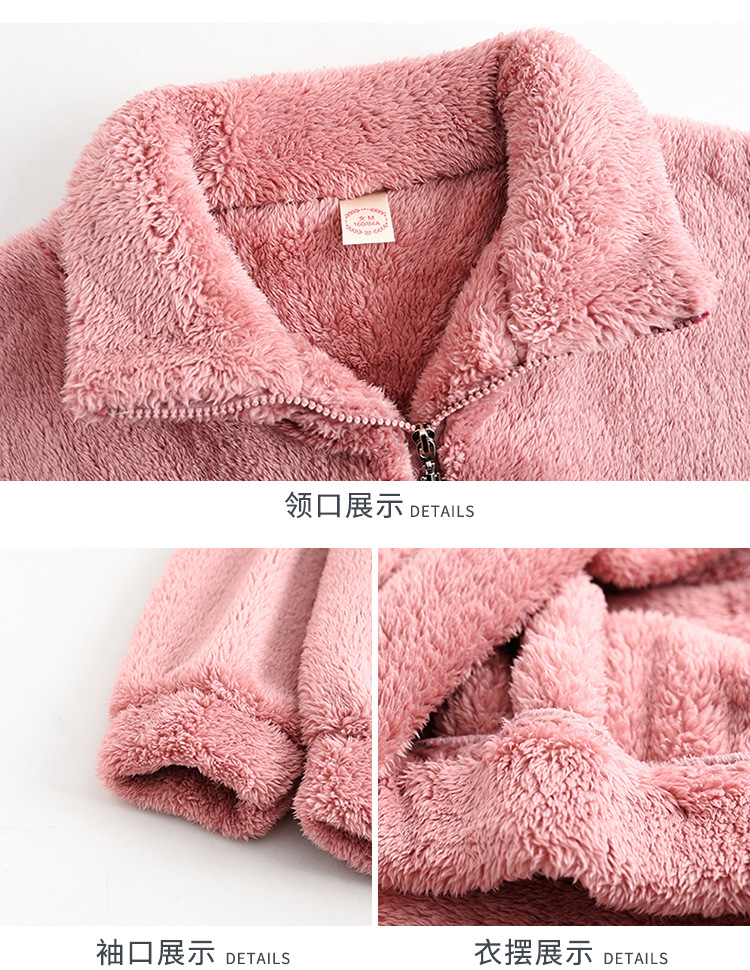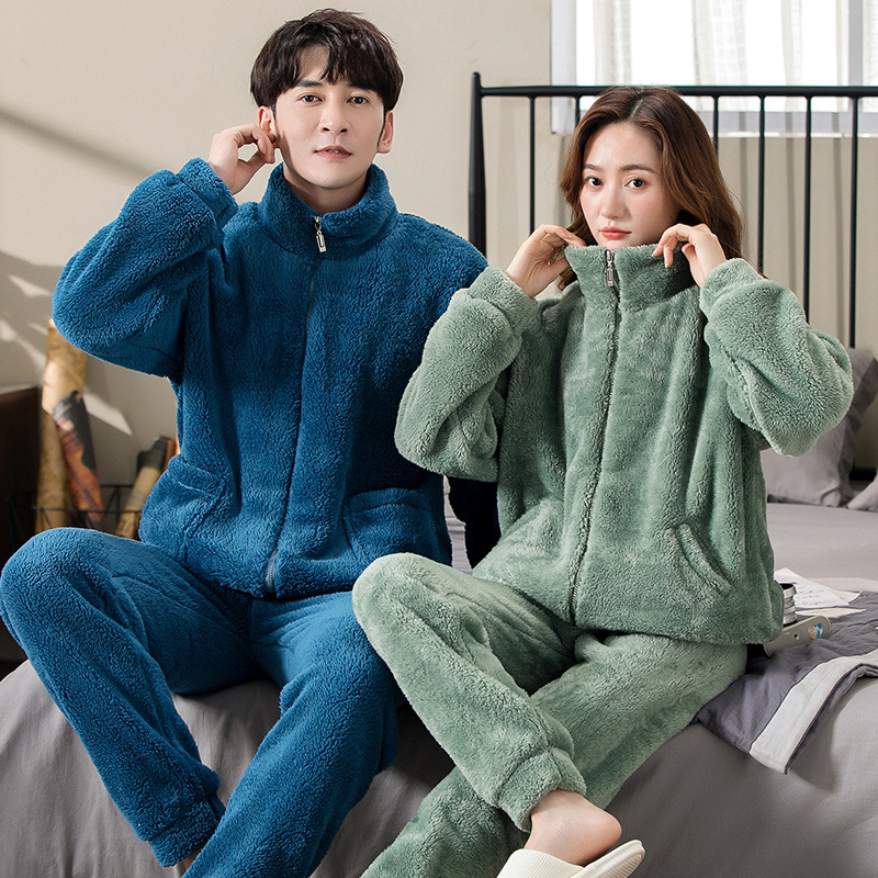 산호 양털 커플 잠옷 여성 가을과 겨울 두꺼운 플란넬 남성 캐주얼 간단한 지퍼 겉옷 홈웨어