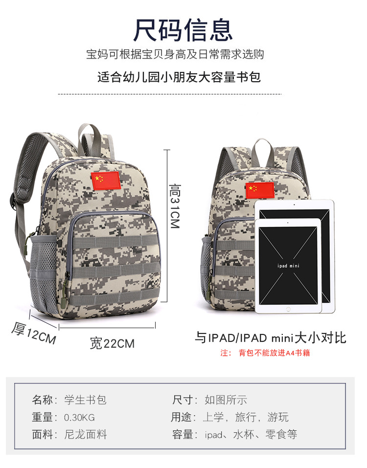 어린이 위장 스쿨백 소년 유치원 봄 여행 배낭 소년 여행 야외 여름 캠프