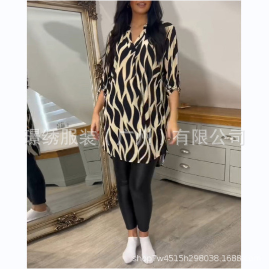 2023 봄과 가을 새로운 국경 아마존 국경 간 유럽과 미국의 패션 패턴 V-넥 플러스 사이즈 소매 셔츠스토어 가기