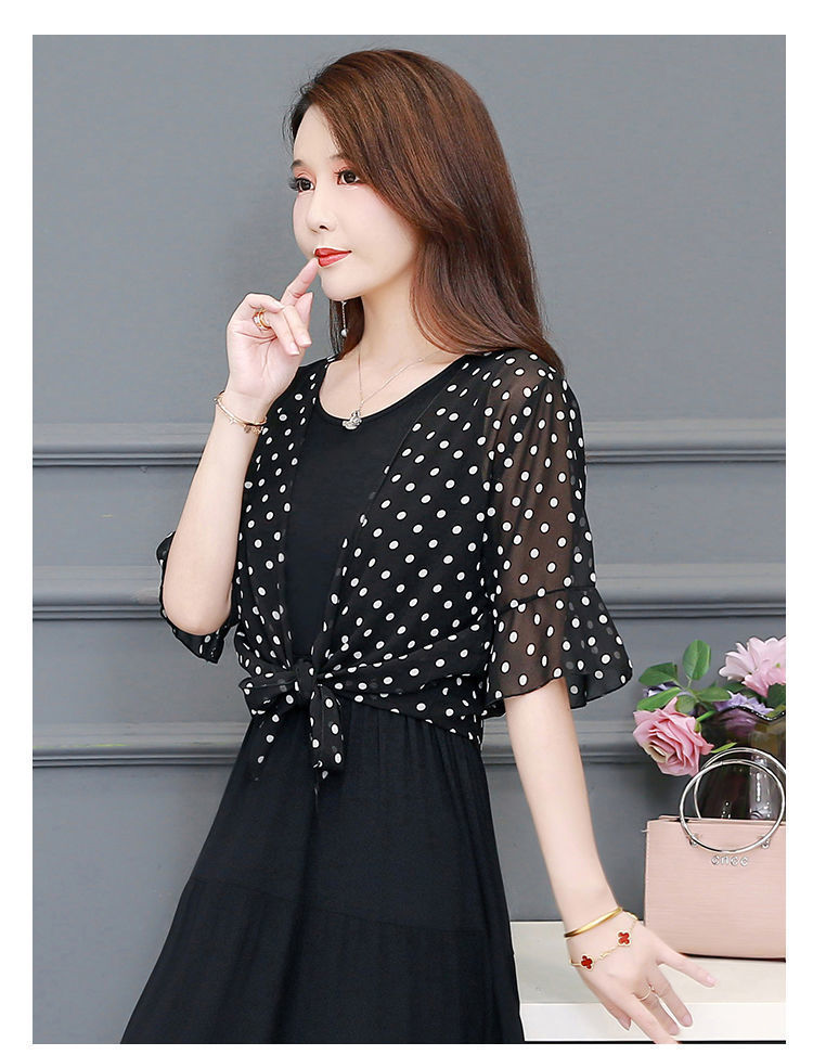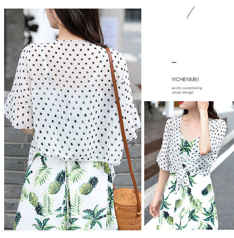 2023 반소매 벨 슬리브 숄 얇은 작은 코트 여성의 태양 보호 의류 짧은 양복 조끼 외부 쉬폰 카디건스토어 가기