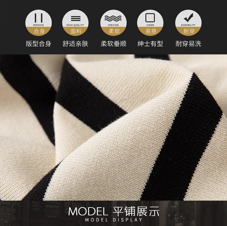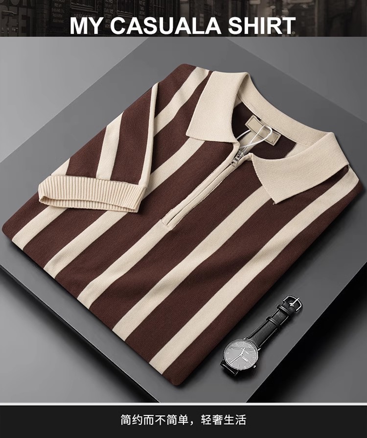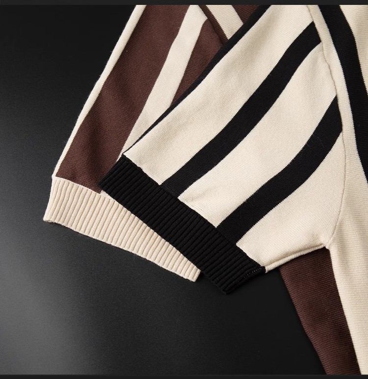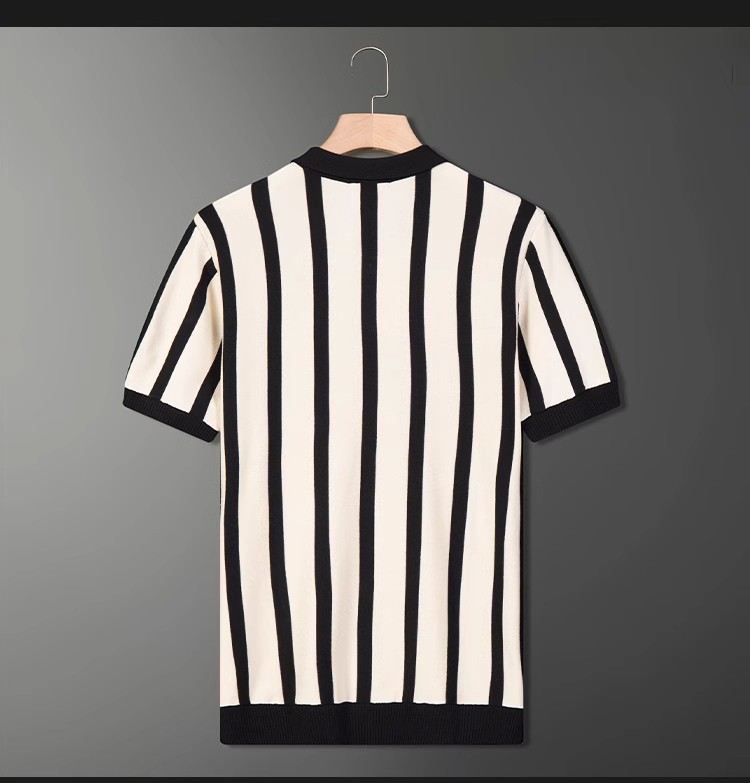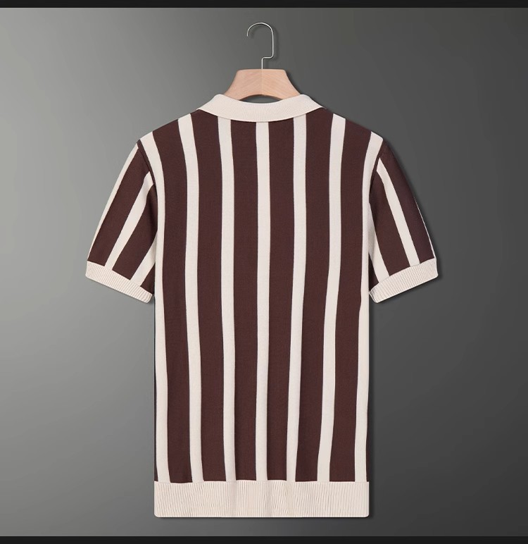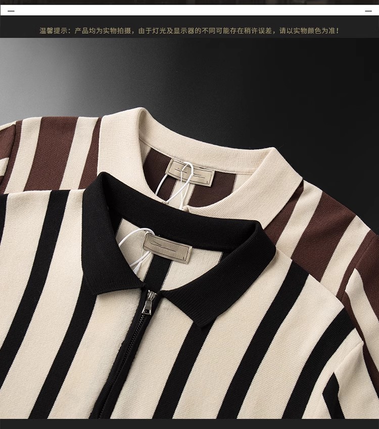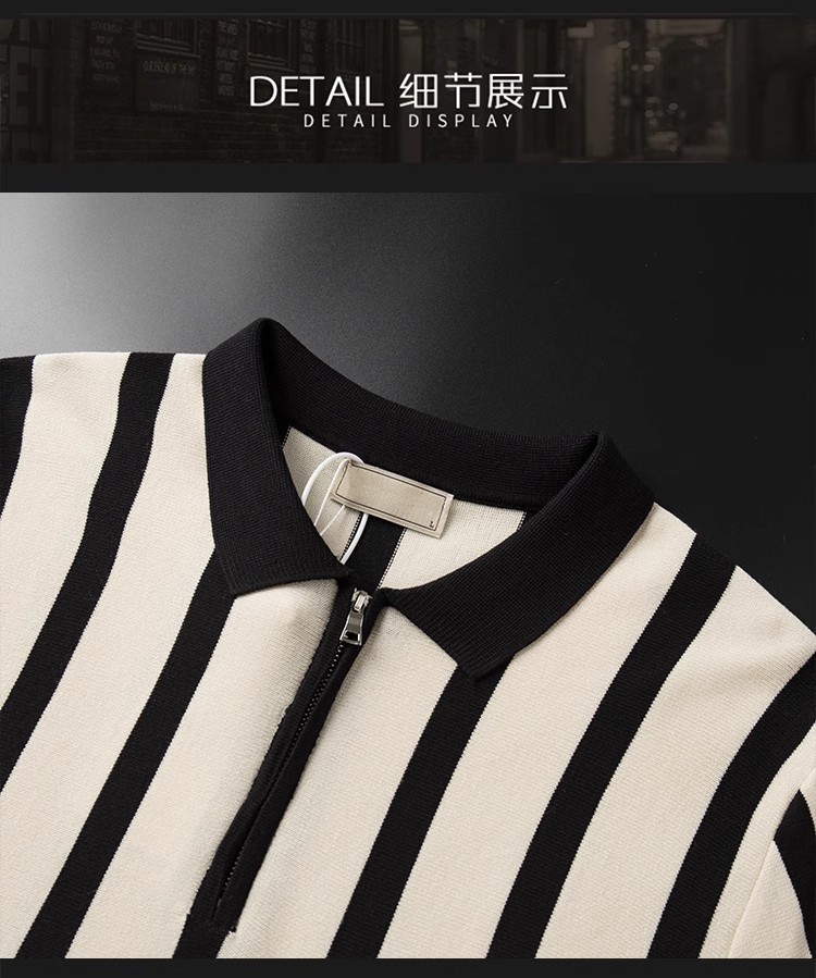 트렌디 한 여름 반소매 올매치 남자 한국 스타일 레트로 스트라이프 독특한 지퍼 반소매 니트웨어 캐주얼 트렌디 티셔츠 남성용 트렌디스토어 가기