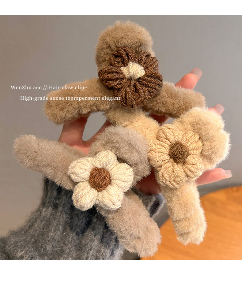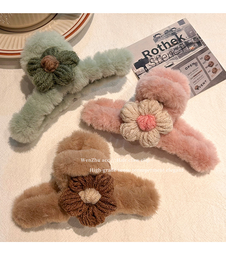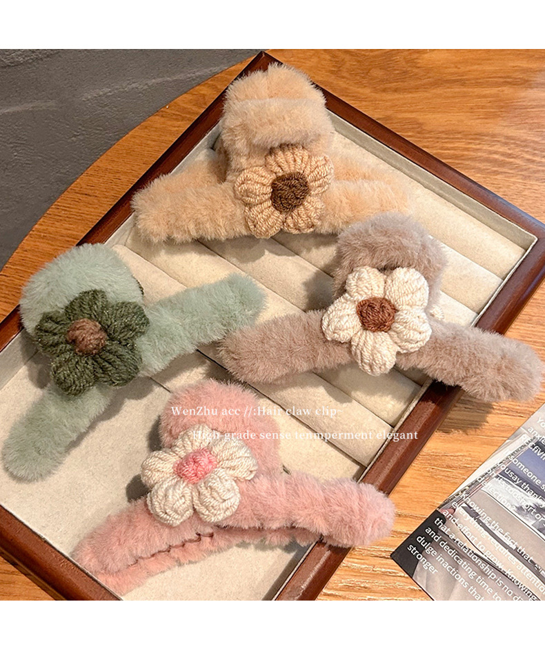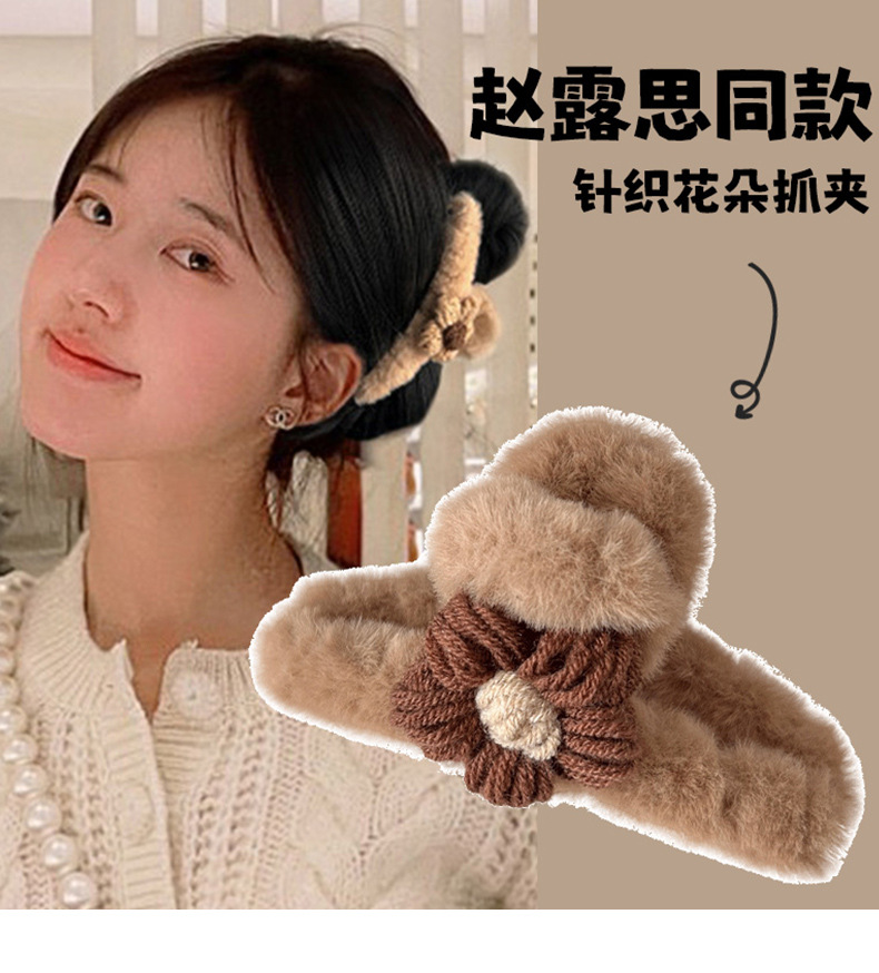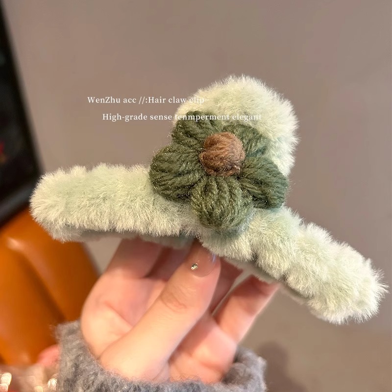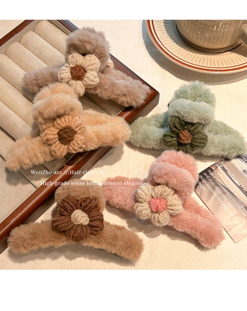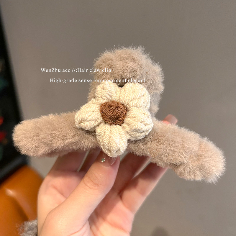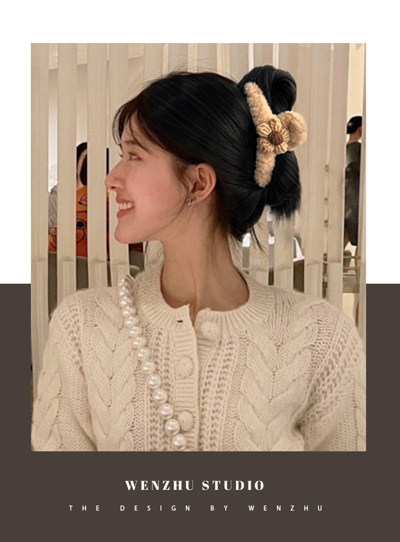 봉제 니트 꽃 클립 여성의 대형 클립 머리 2023 가을과 겨울 새로운 고급 머리 상어 클립스토어 가기