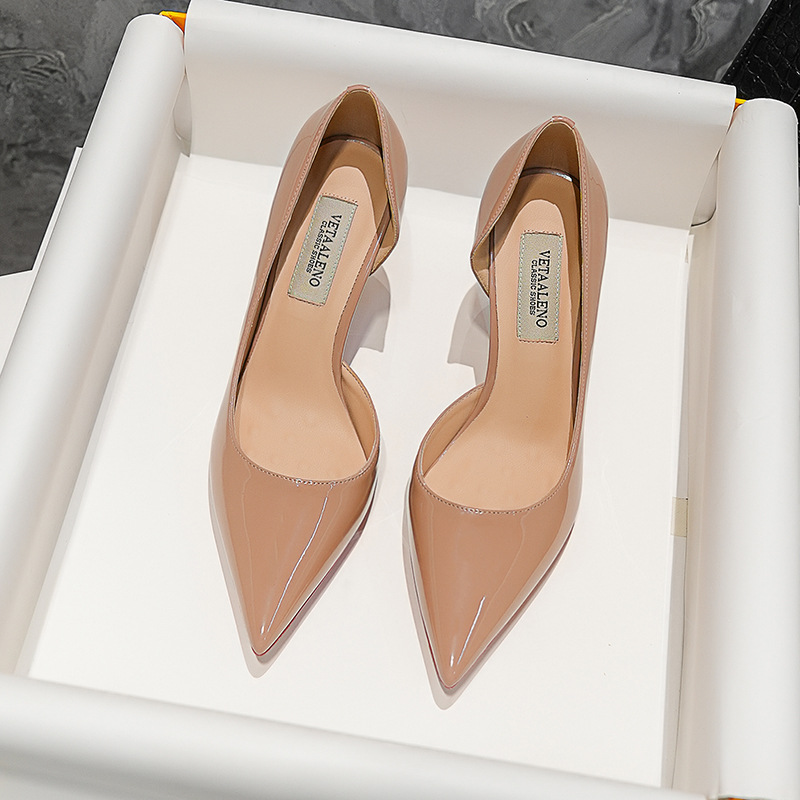 사이드 오픈 레드 하이힐 2025 봄 여성용 뾰족코 섹시 사이드 오픈 스틸레토힐 OL 인기 누드 컬러 여성 구두스토어 가기