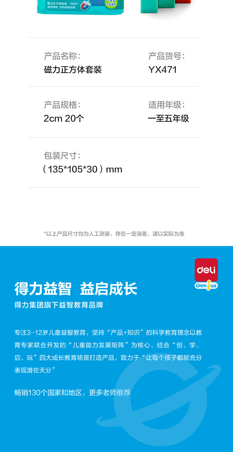 델리 YX471 자기 큐브 직사각형 3 차원 기하학 그래픽 교육 보조 자기 흡입 빌딩 블록 수학스토어 가기