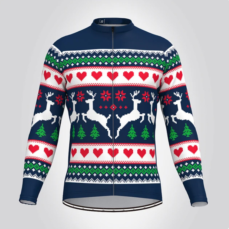 2024 국경 새로운 크리스마스 모조 스웨터 사이클링 의류 자전거 양털 긴 소매 귀여운 두꺼운 따뜻한 탑