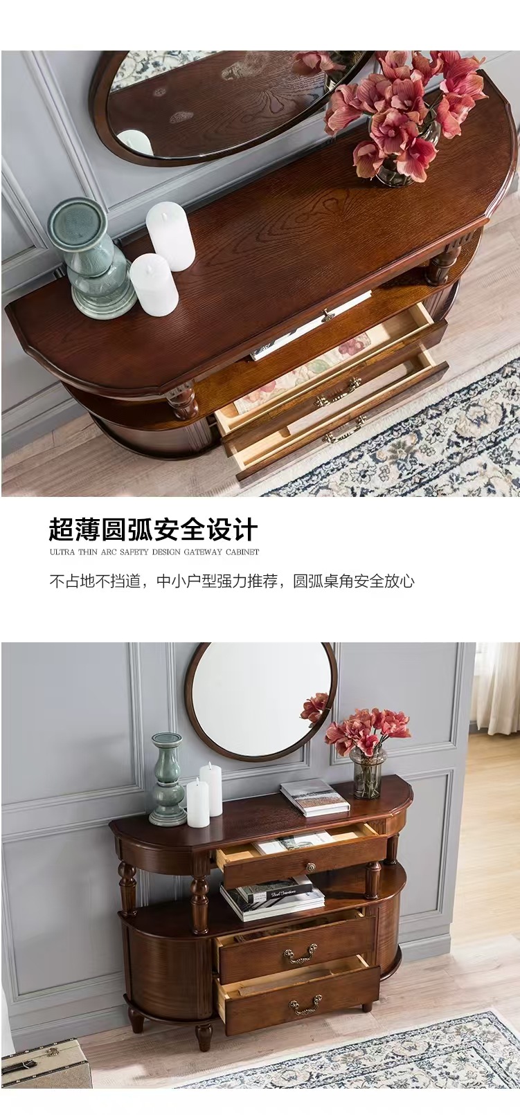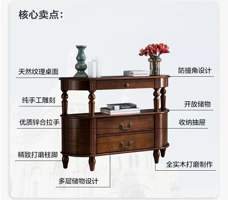 미국식 단단한 나무 복도 카운터 반원 간단한 입구 빛 고급 유럽 스타일의 복도 테이블 복도 장식 캐비닛 책상스토어 가기