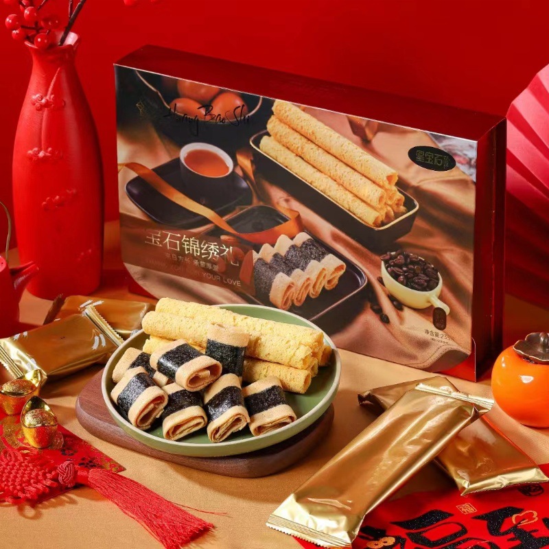 로얄 보석 브로케이드 선물 손으로 만든 계란 롤 선물 상자 235g 피닉스 롤 전통 새해 간식 차