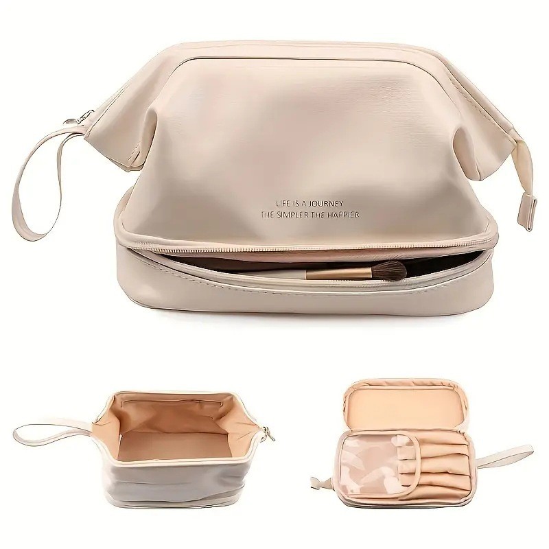 휴대용 더블 레이어 구름 화장품 가방 휴대용 대용량 다기능 저장 가방 PU 방수 세척 여행 가방