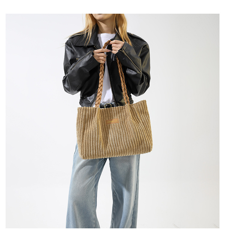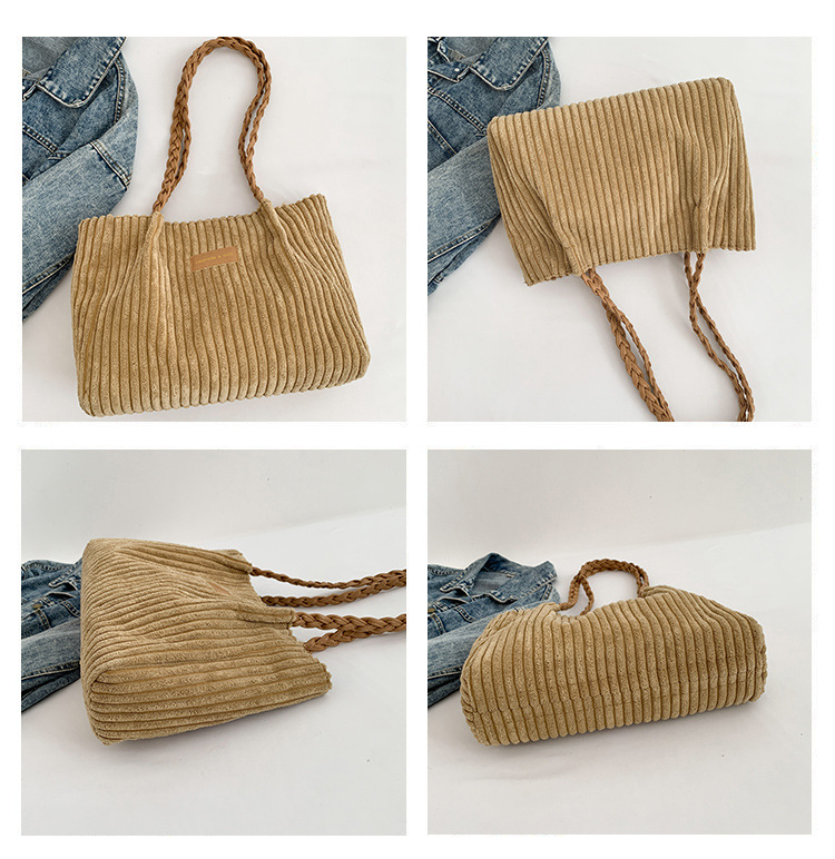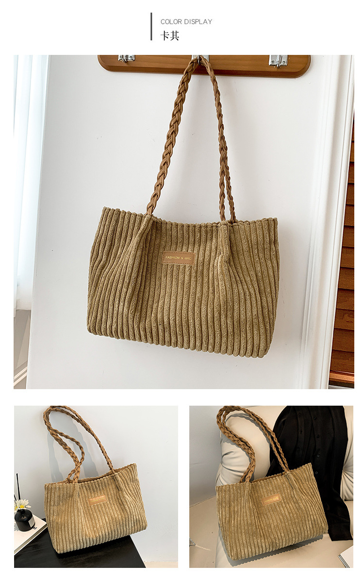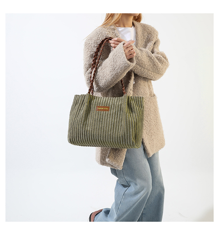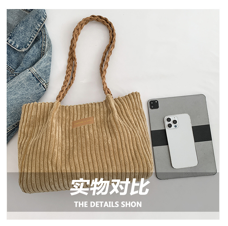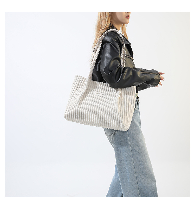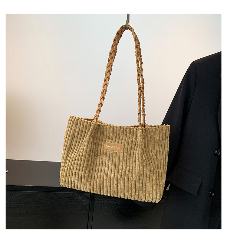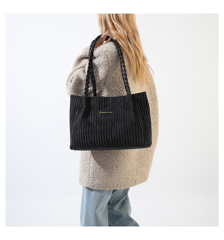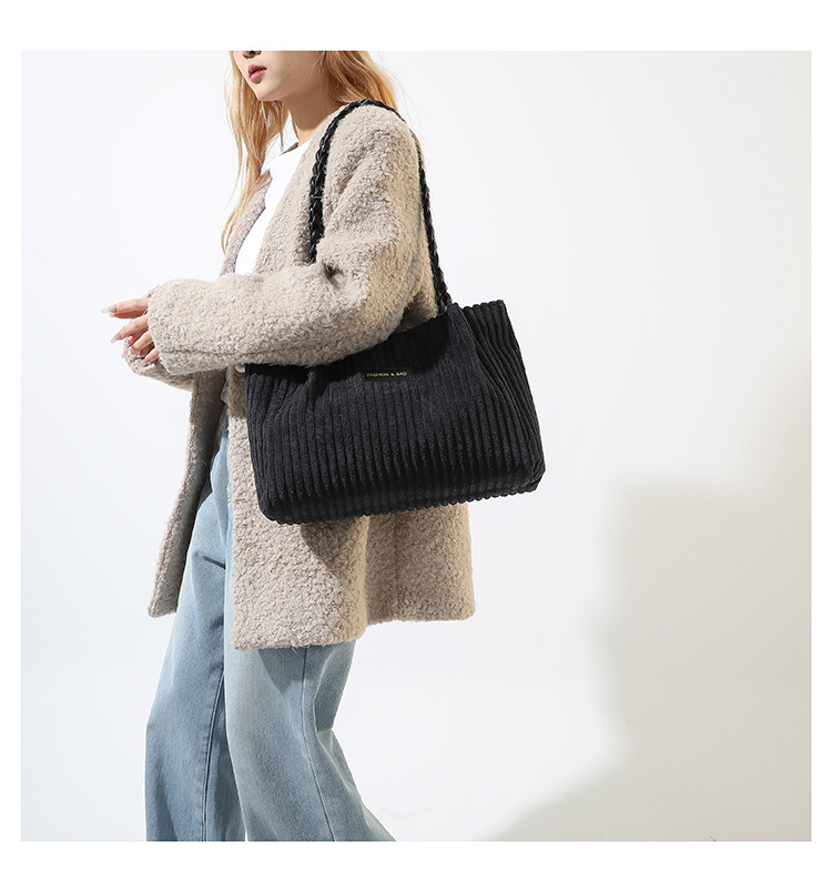 Corduroy 캐주얼 2023 단색 새로운 유럽과 미국 패션 대용량 토트 여성 어깨 겨드랑이 핸드백스토어 가기