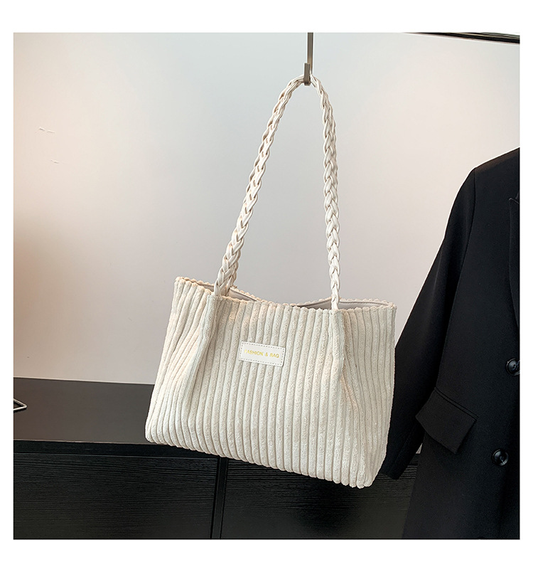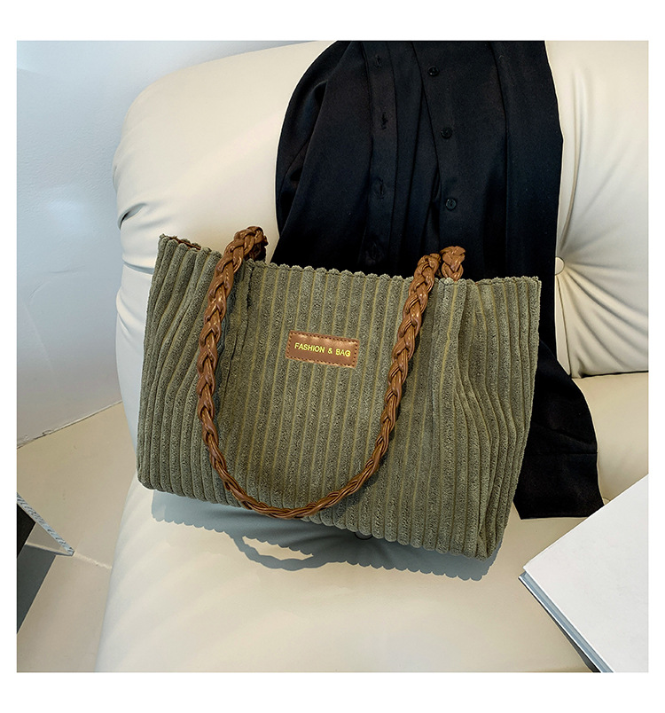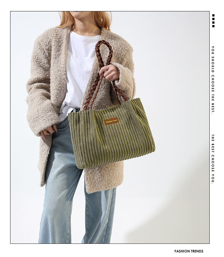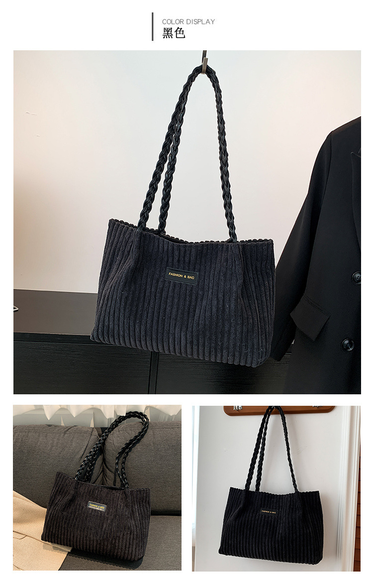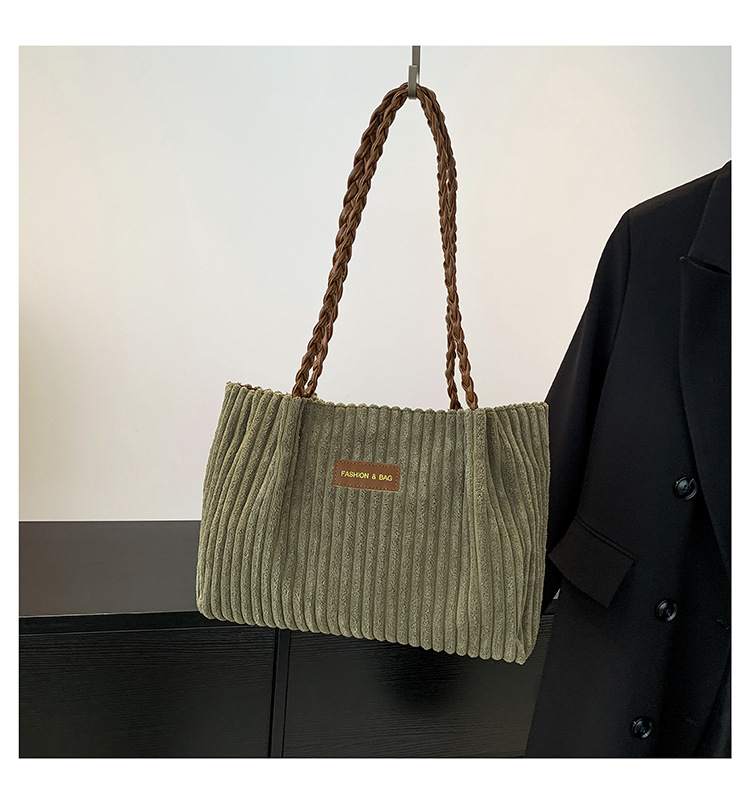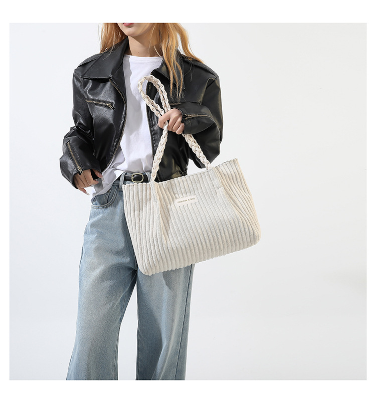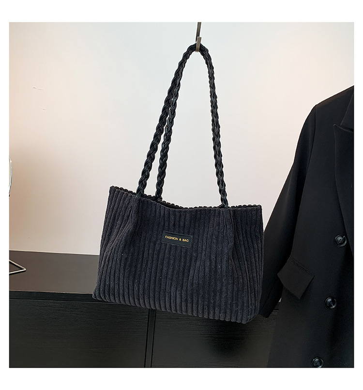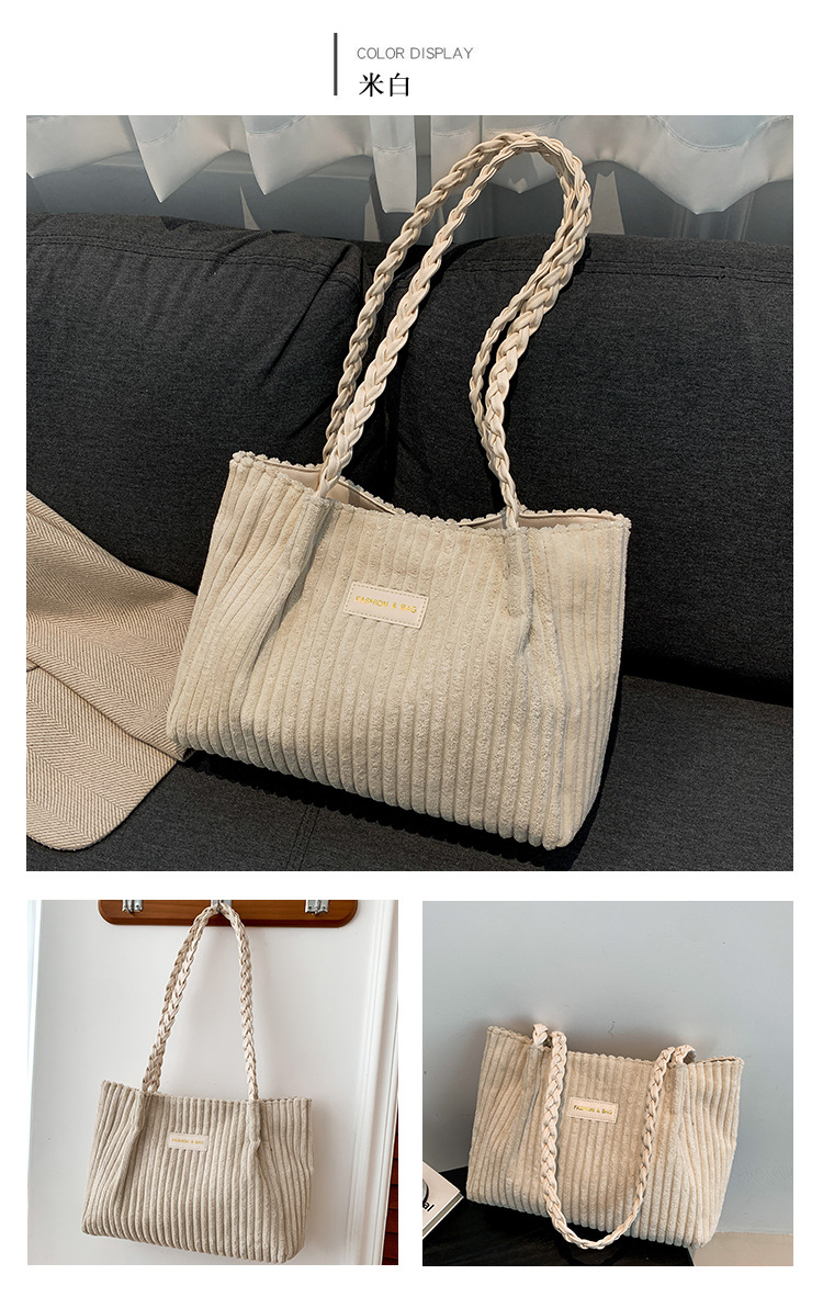 Corduroy 캐주얼 2023 단색 새로운 유럽과 미국 패션 대용량 토트 여성 어깨 겨드랑이 핸드백스토어 가기