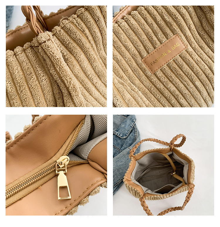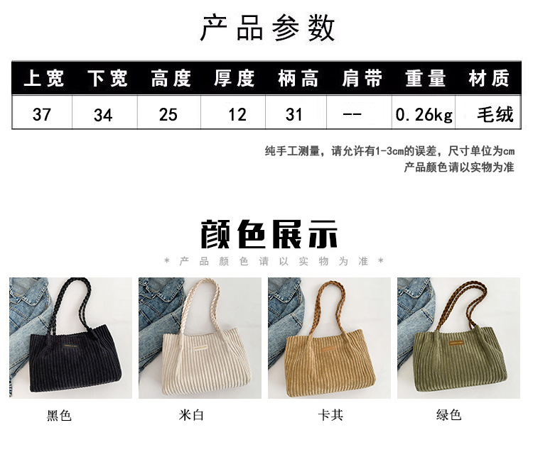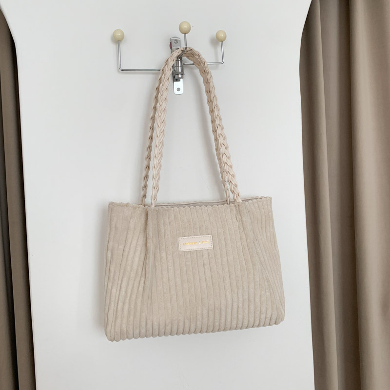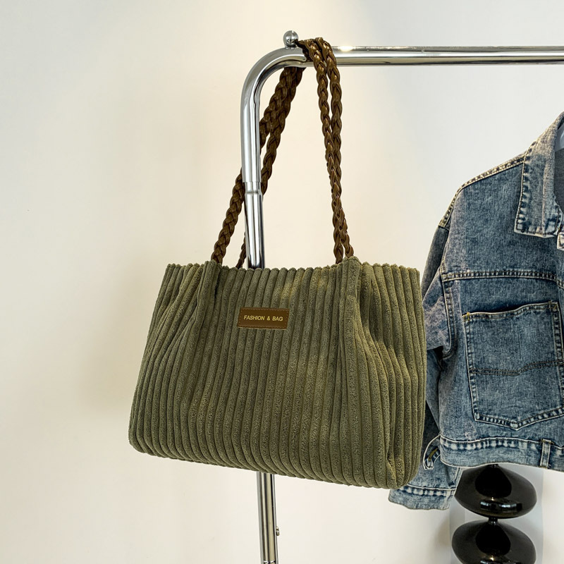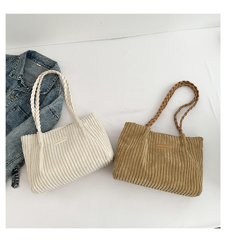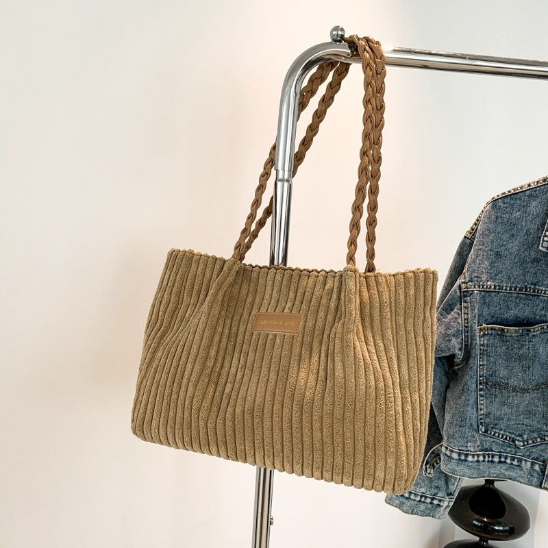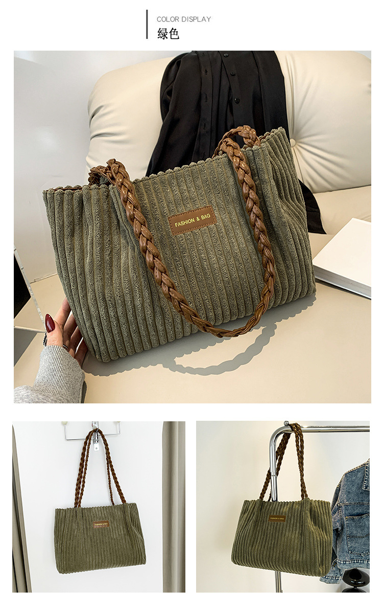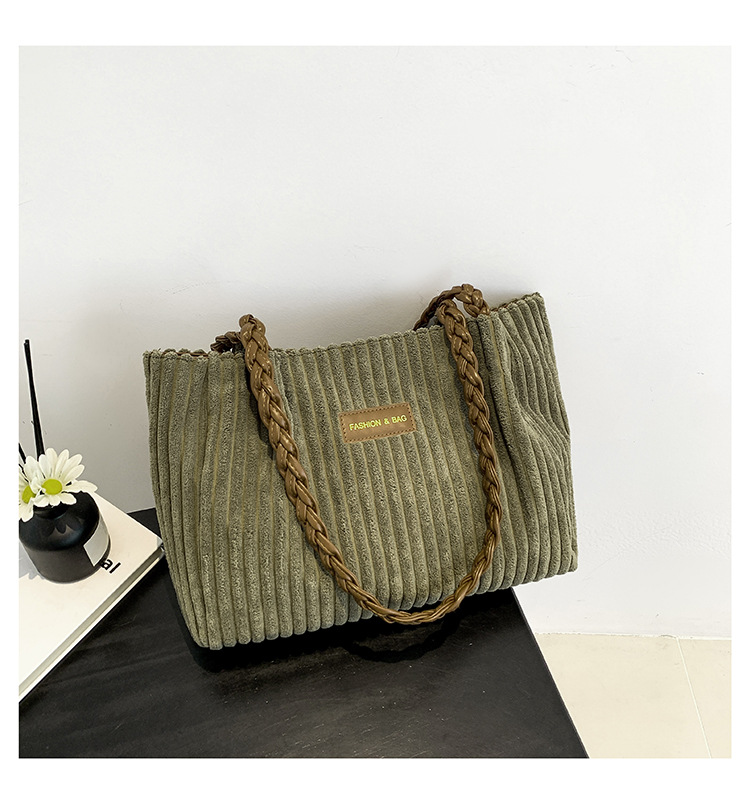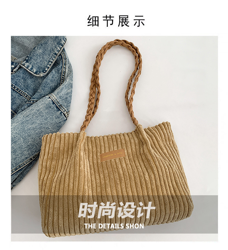 Corduroy 캐주얼 2023 단색 새로운 유럽과 미국 패션 대용량 토트 여성 어깨 겨드랑이 핸드백스토어 가기