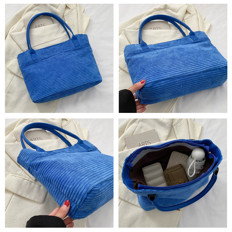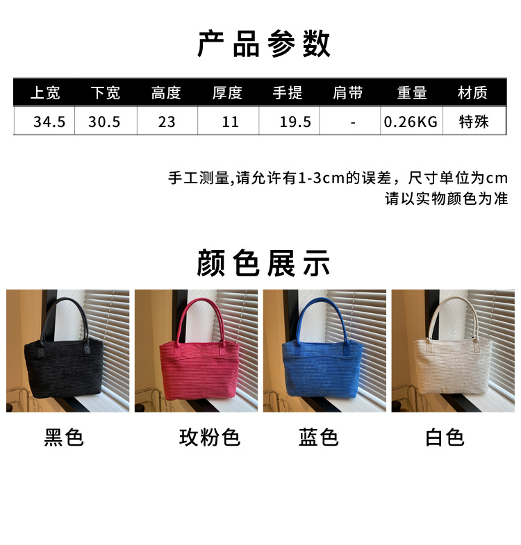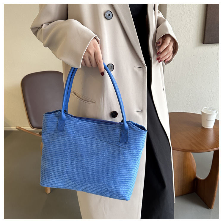 우아한 대용량 코듀로이 2023 단색 코듀로이 단색 새로운 패션 캐주얼 휴대용 어깨 겨드랑이 여성용 가방스토어 가기