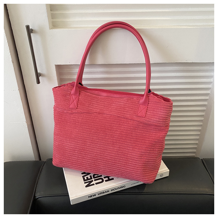 우아한 대용량 코듀로이 2023 단색 코듀로이 단색 새로운 패션 캐주얼 휴대용 어깨 겨드랑이 여성용 가방
