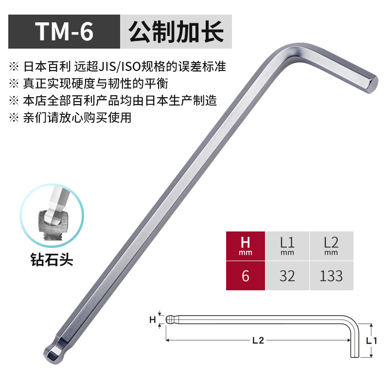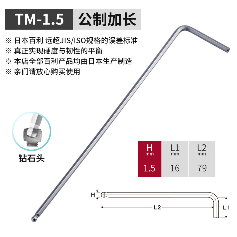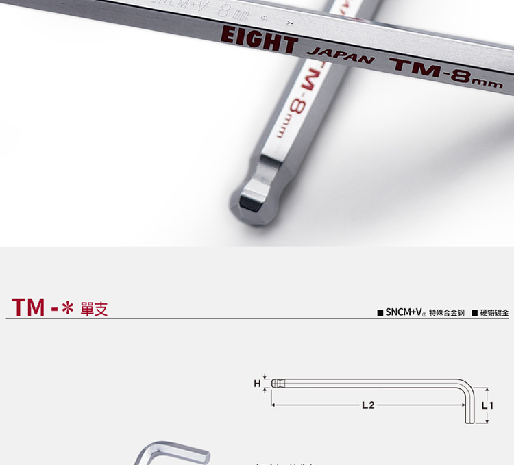 일본 EIGHT 베일리 긴 볼 헤드 단일 육각 렌치 수입 TMS-9 단일 육각 키 TM-1.5