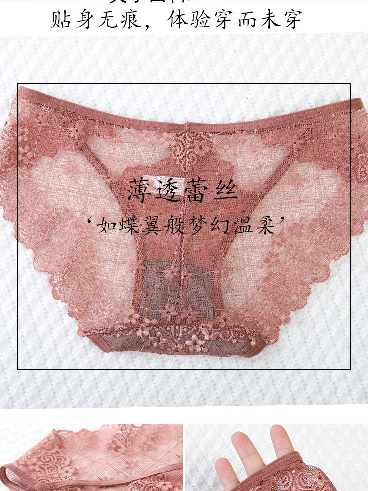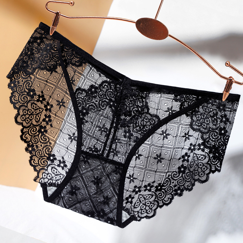 매력적인 섹시한 레이스 속옷 여성의 투명한 속이 빈 낮은 허리 울트라 얇은 통기성 편안한 여름 여성 브리핑