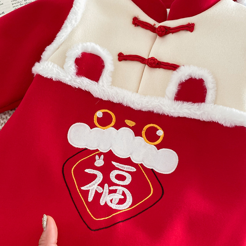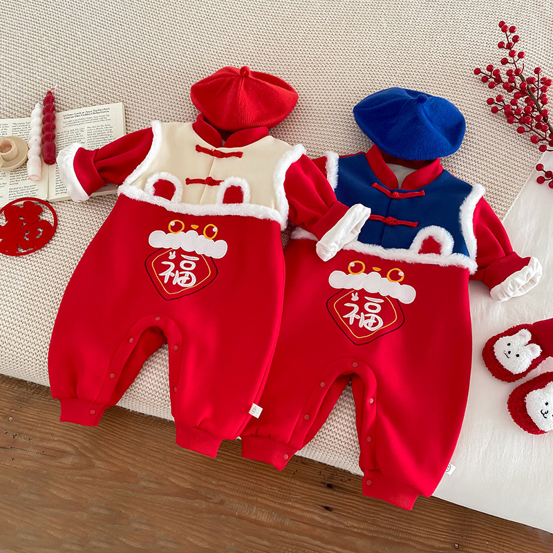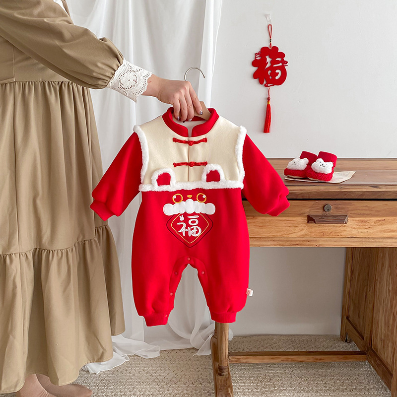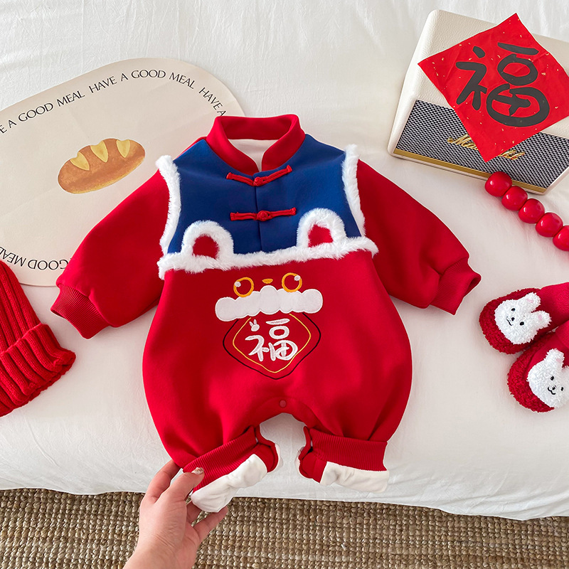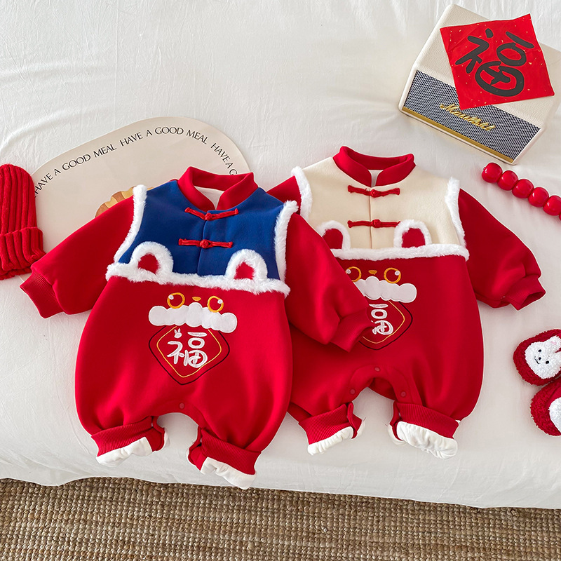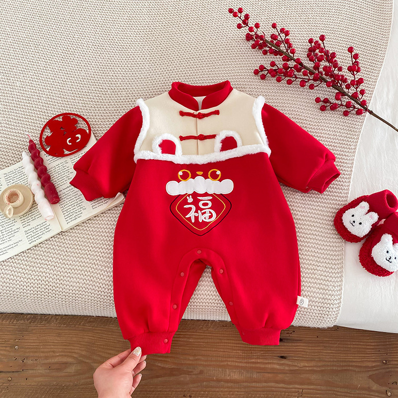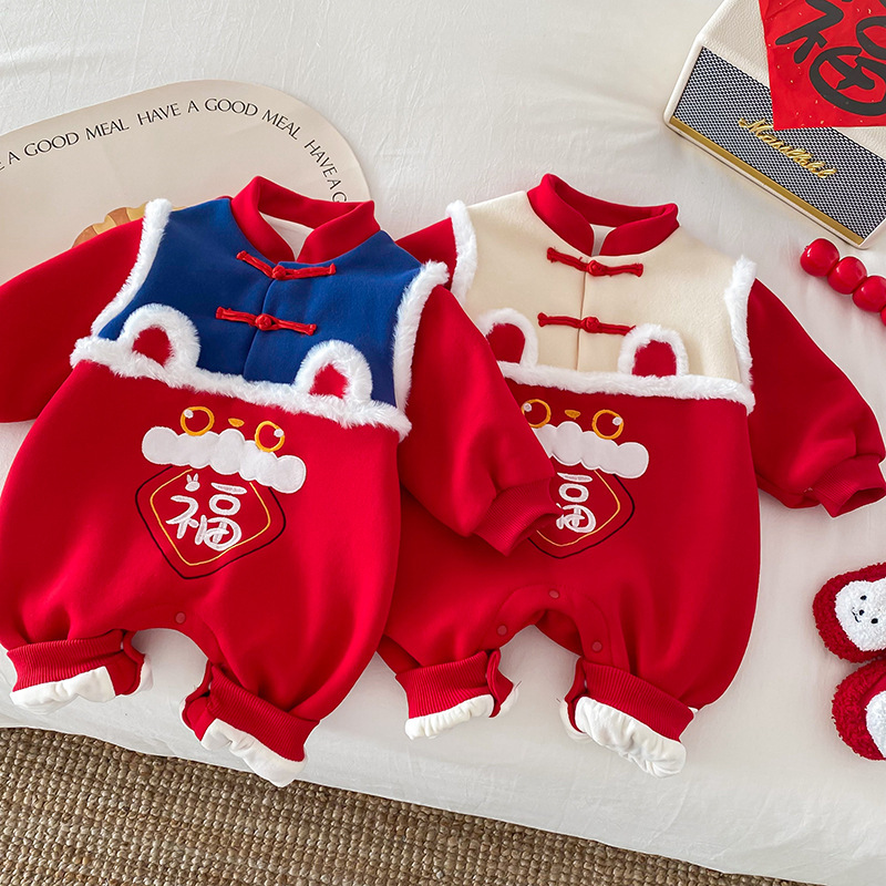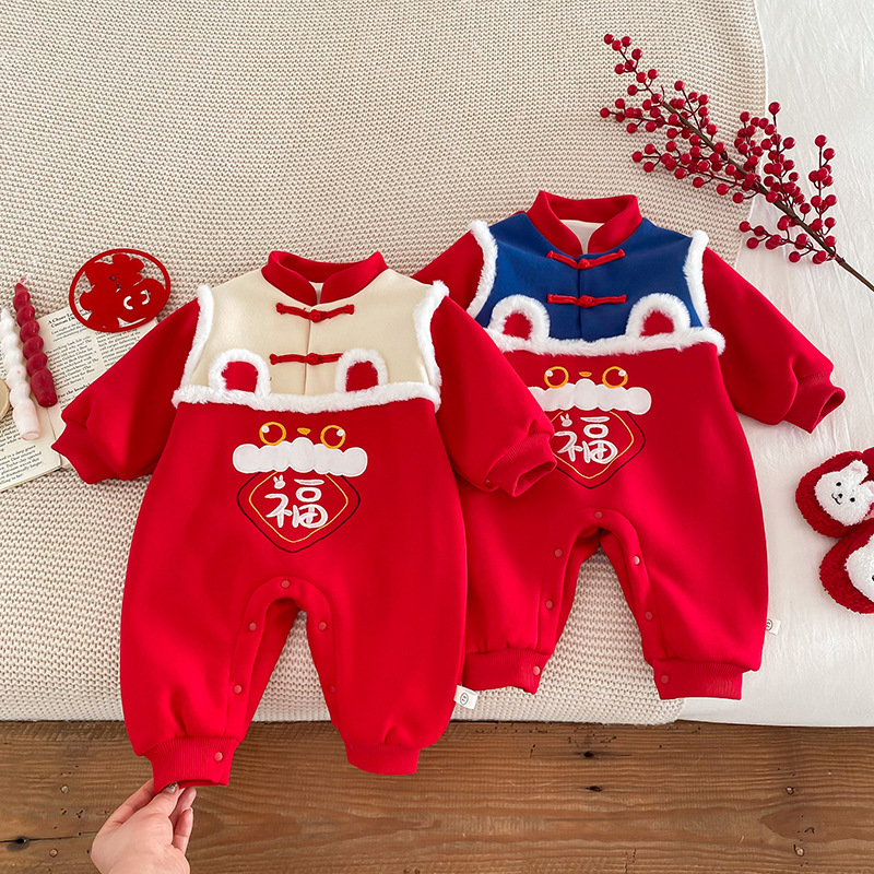 아기 기모 점프 수트 겨울 새해 인사말 옷 남성과 여성 아기 결혼식 옷 백 일 된 퀼트 두꺼운 롬퍼