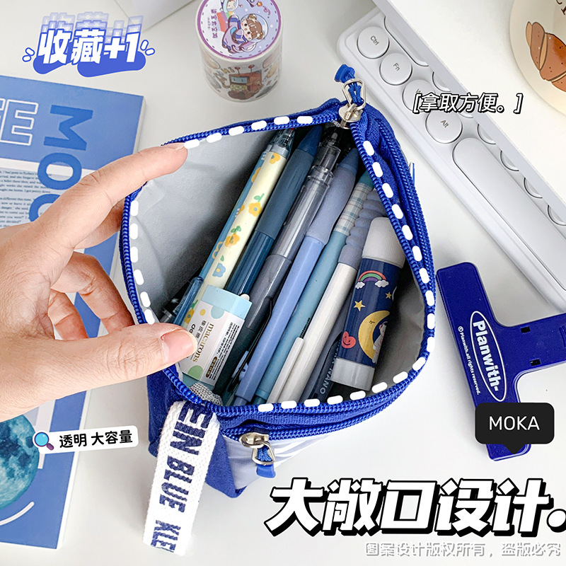 클라인 블루 연필 케이스 투명 캔버스 더블 레이어 휴대용 연필 케이스 소년 대용량 학생 연필 저장 문구 상자스토어 가기