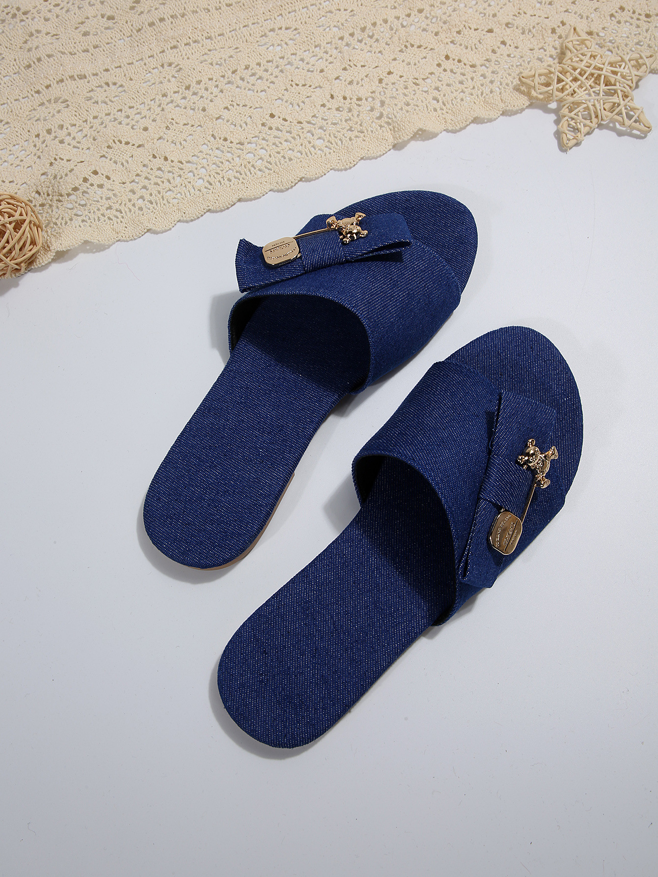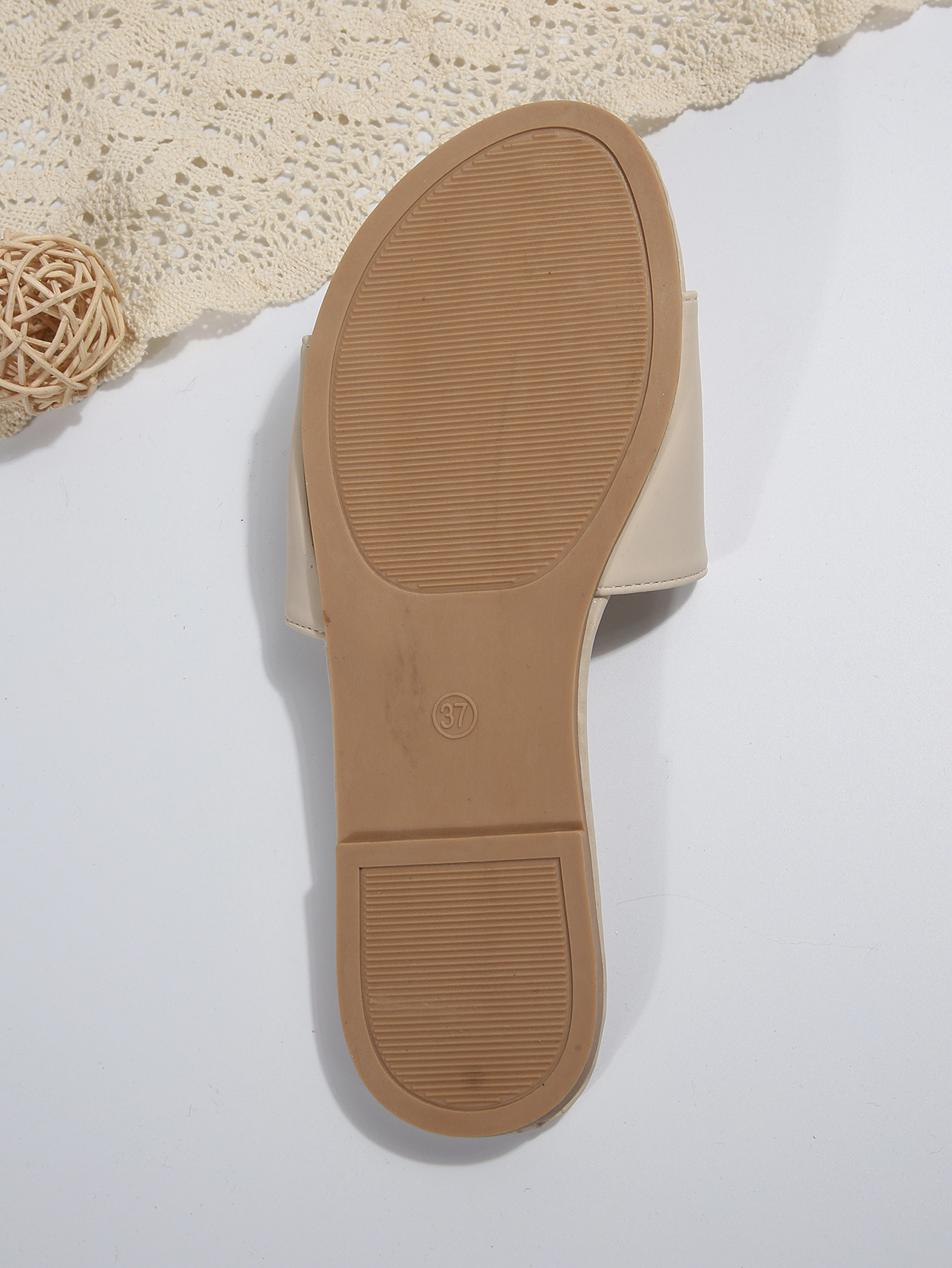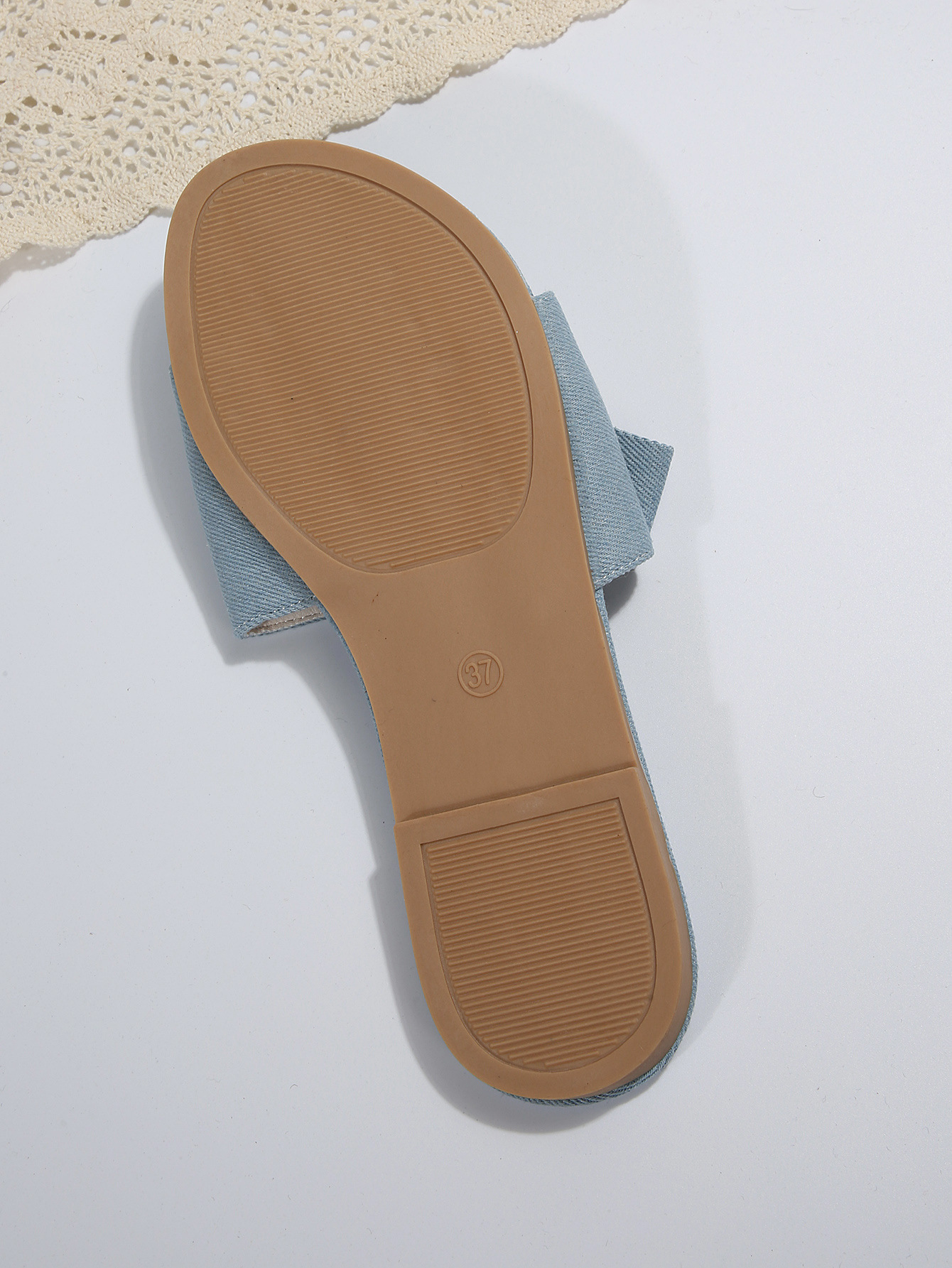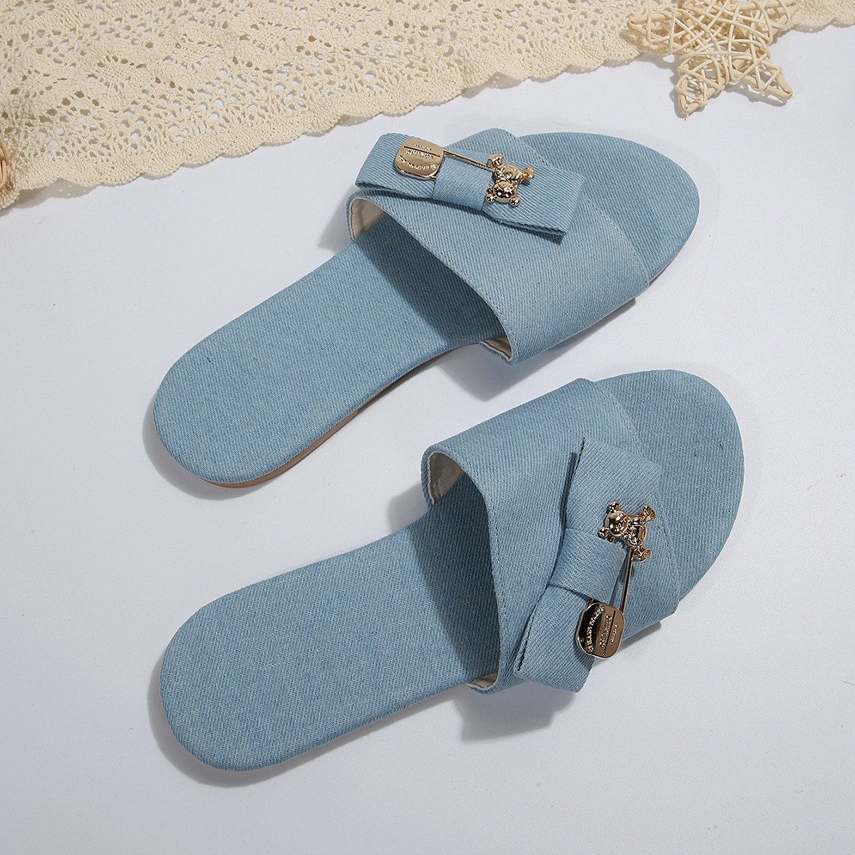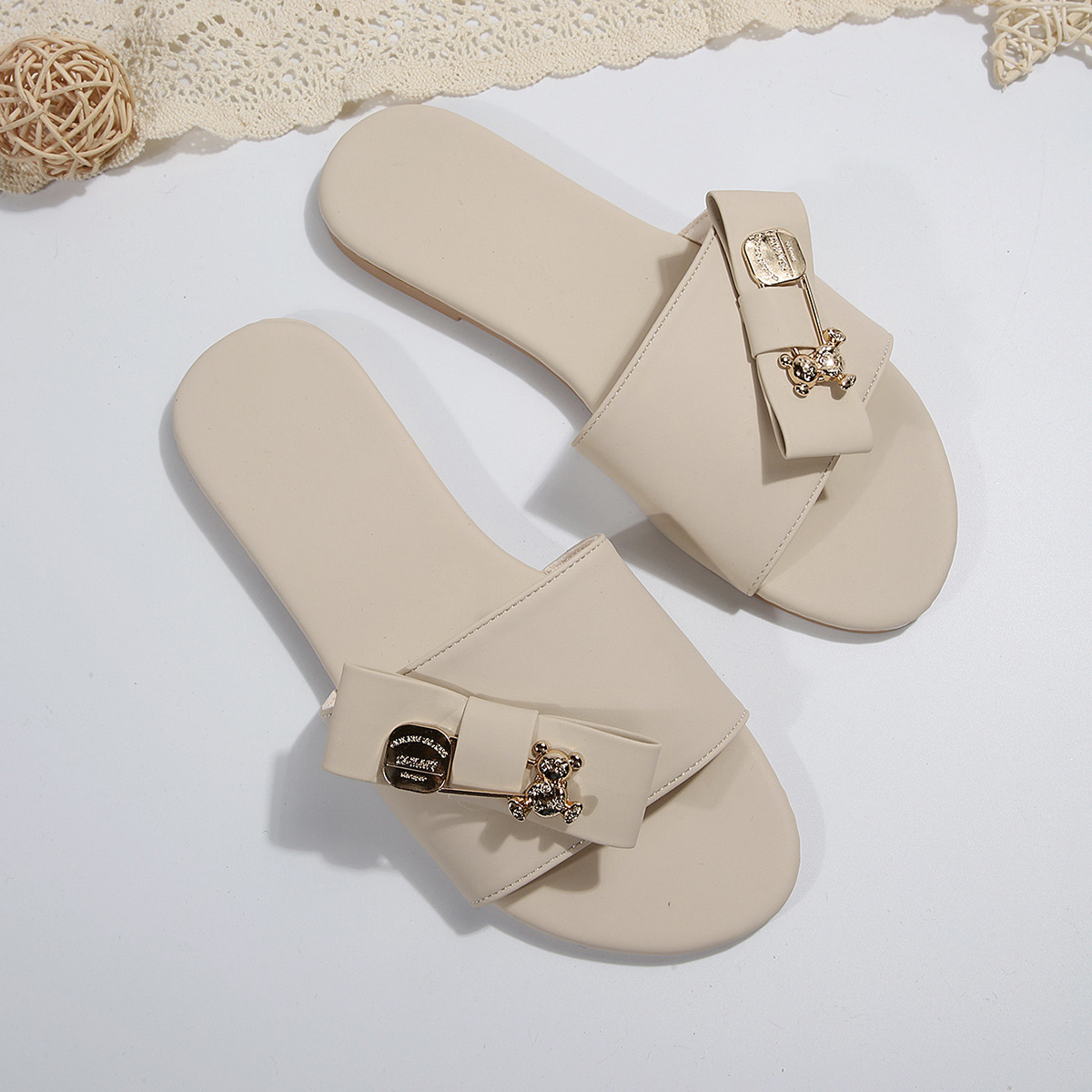 2023 여름 대외 무역 플러스 사이즈 국경 새로운 단색 올 매치 활 곰 장식 버클 슬립 샌들