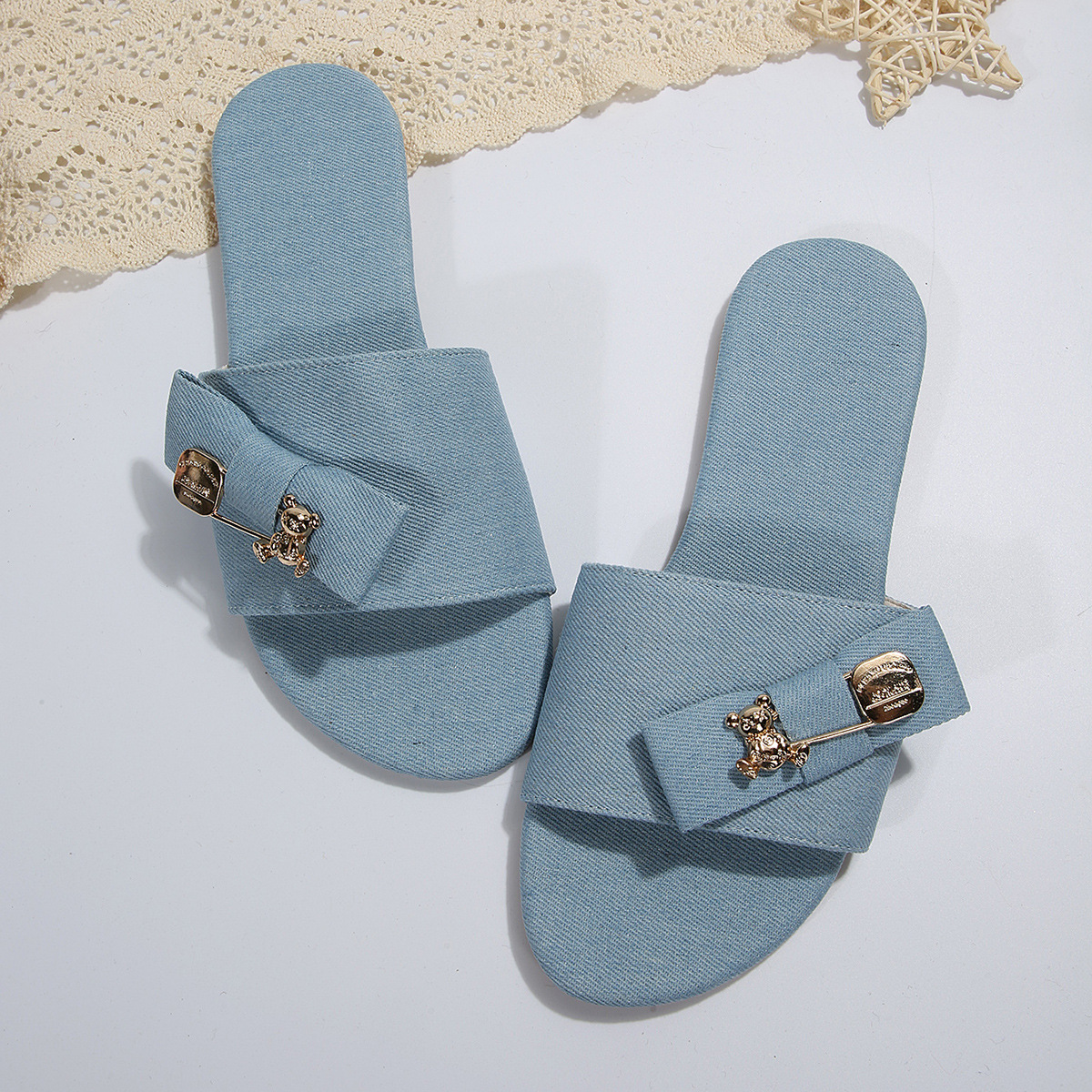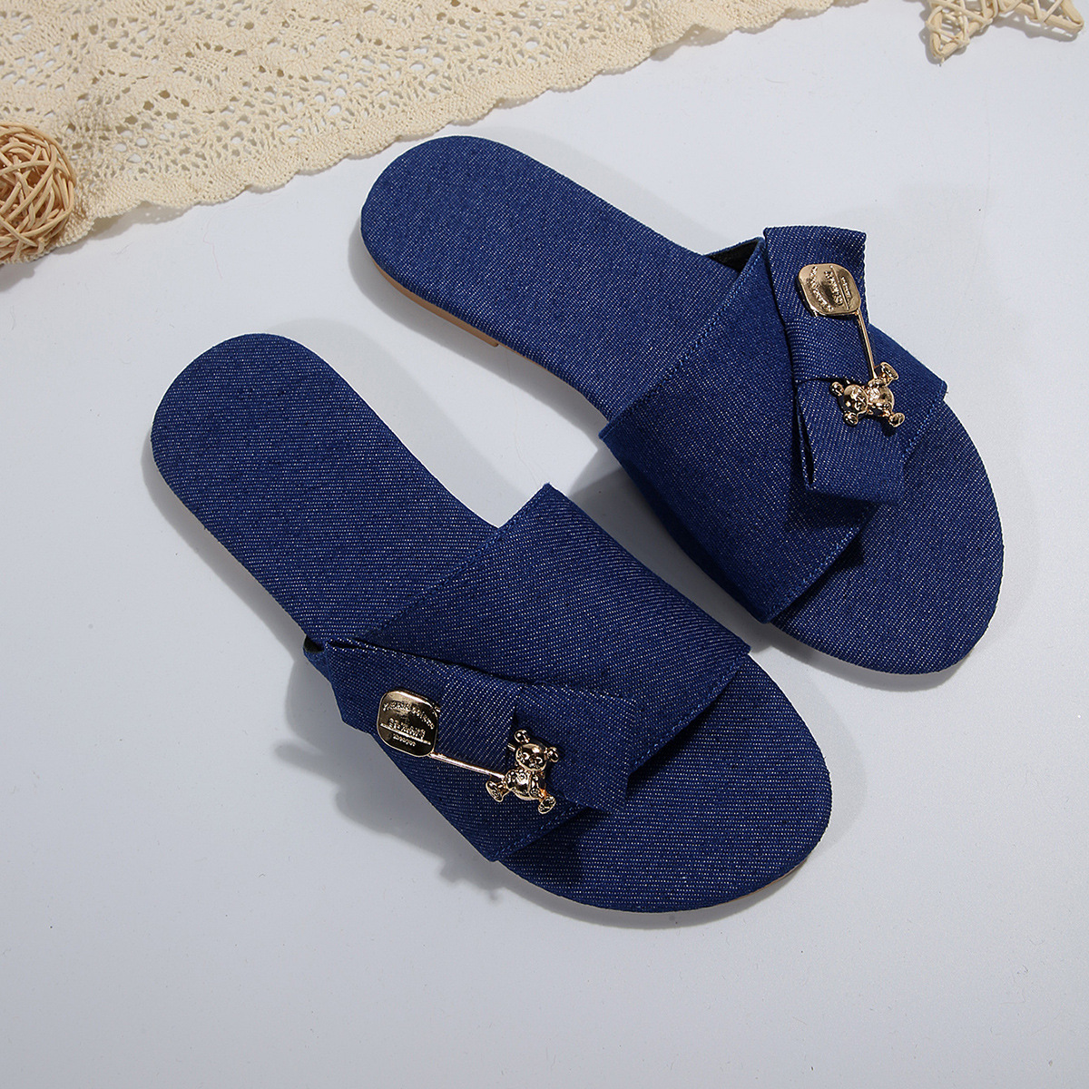 2023 여름 대외 무역 플러스 사이즈 국경 새로운 단색 올 매치 활 곰 장식 버클 슬립 샌들스토어 가기