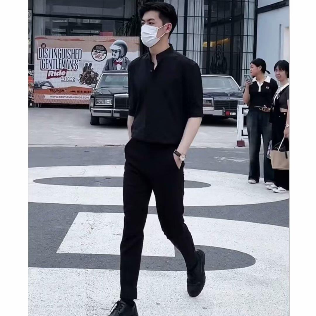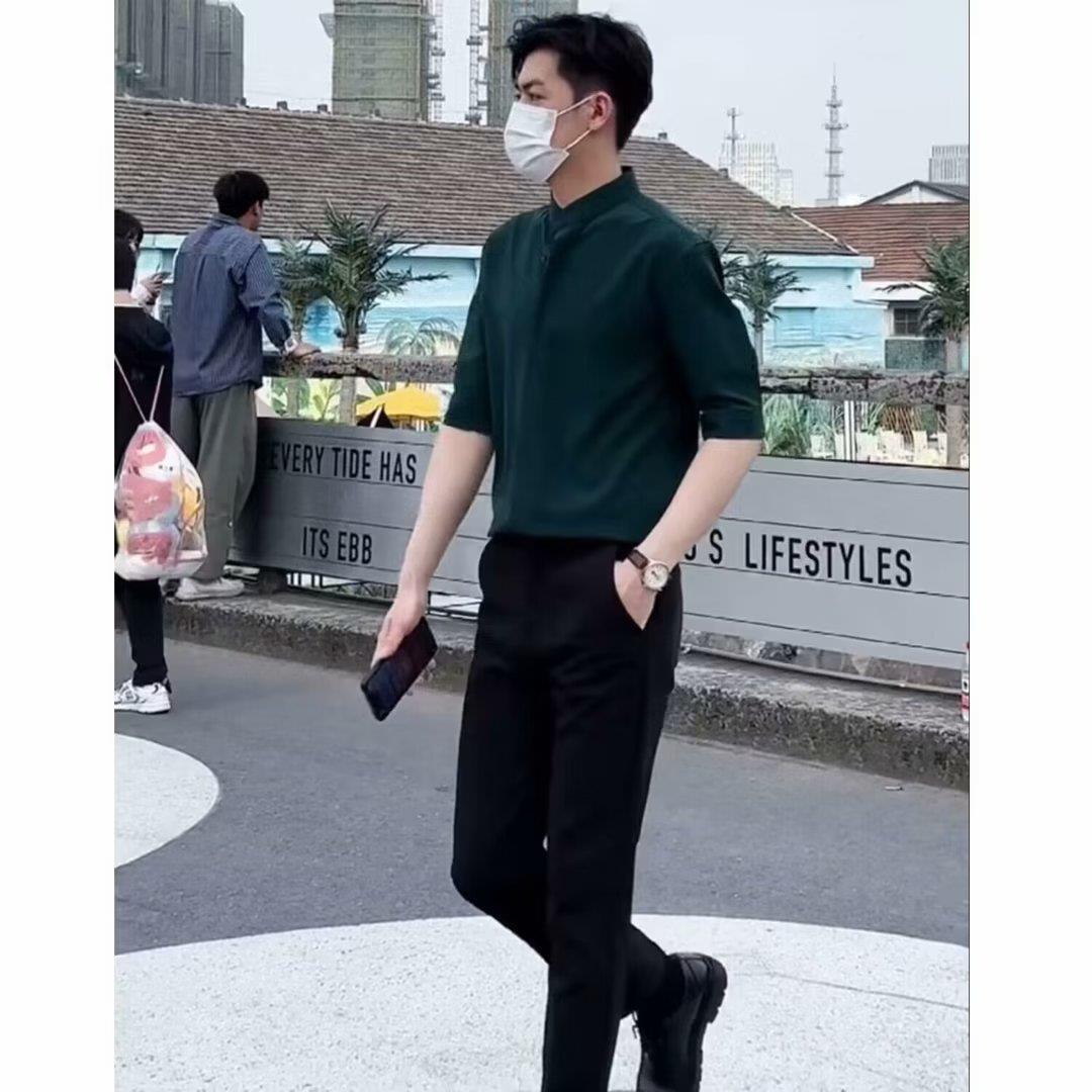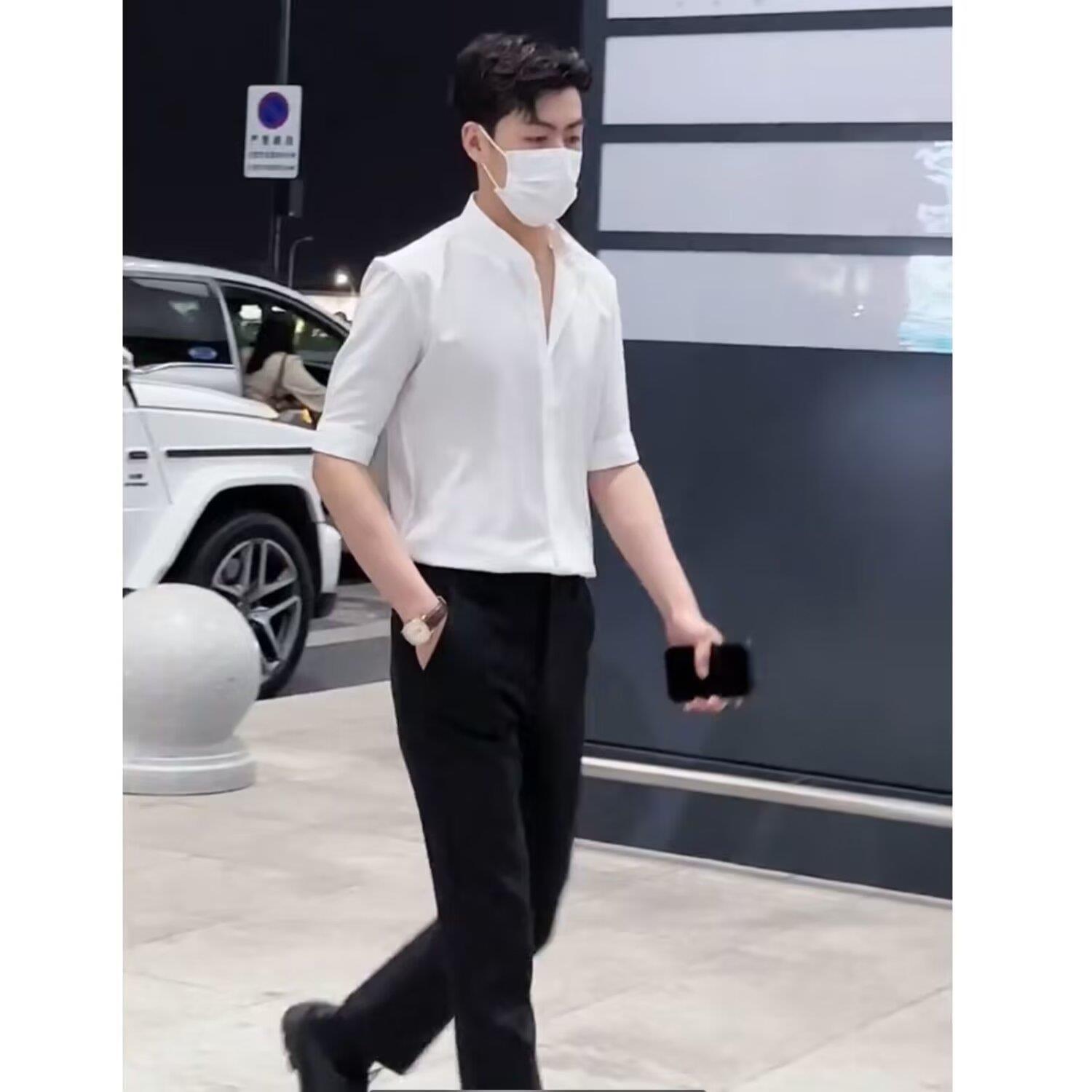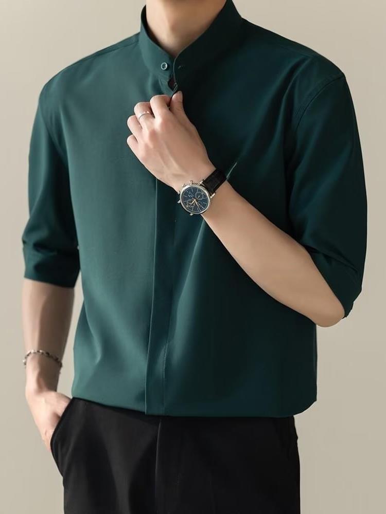 뉴 스타일 라이트 럭셔리 하이 엔드 수직 칼라 남성 셔츠 반소매 비즈니스 통근 올 매치 슬림 핏 하이 엔드 드랩 셔츠스토어 가기