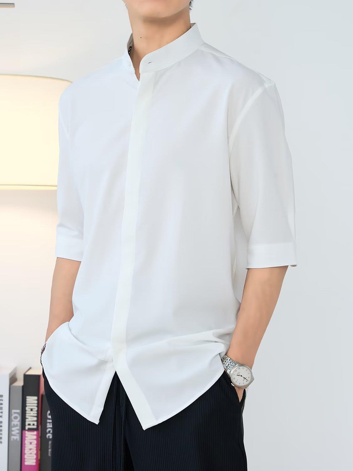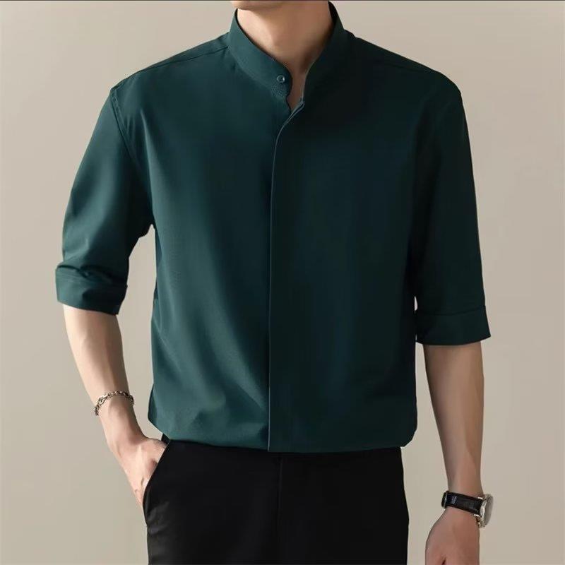 뉴 스타일 라이트 럭셔리 하이 엔드 수직 칼라 남성 셔츠 반소매 비즈니스 통근 올 매치 슬림 핏 하이 엔드 드랩 셔츠