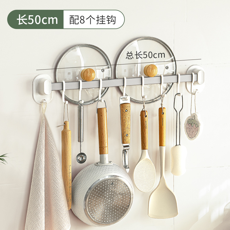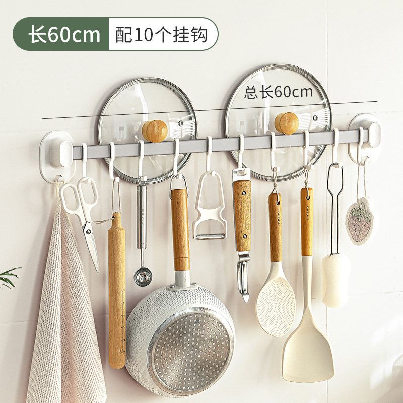 【 介 绍】:厨房挂钩架,选用优良铝、ABS及PP材质。6钩8钩10 钩可选。免钉壁挂收纳,充分利用墙面空间。可自由调节挂钩位置,3cm离墙间距,轻松挂置多种厨具、锅盖。承重3KG稳固不脱落。适用于多种场景,扩展墙面收纳力。