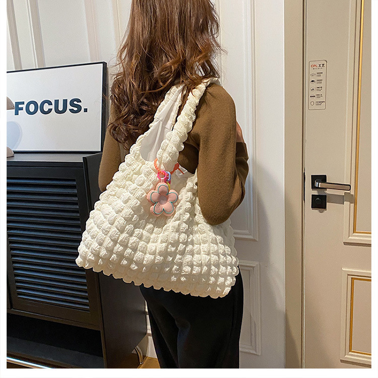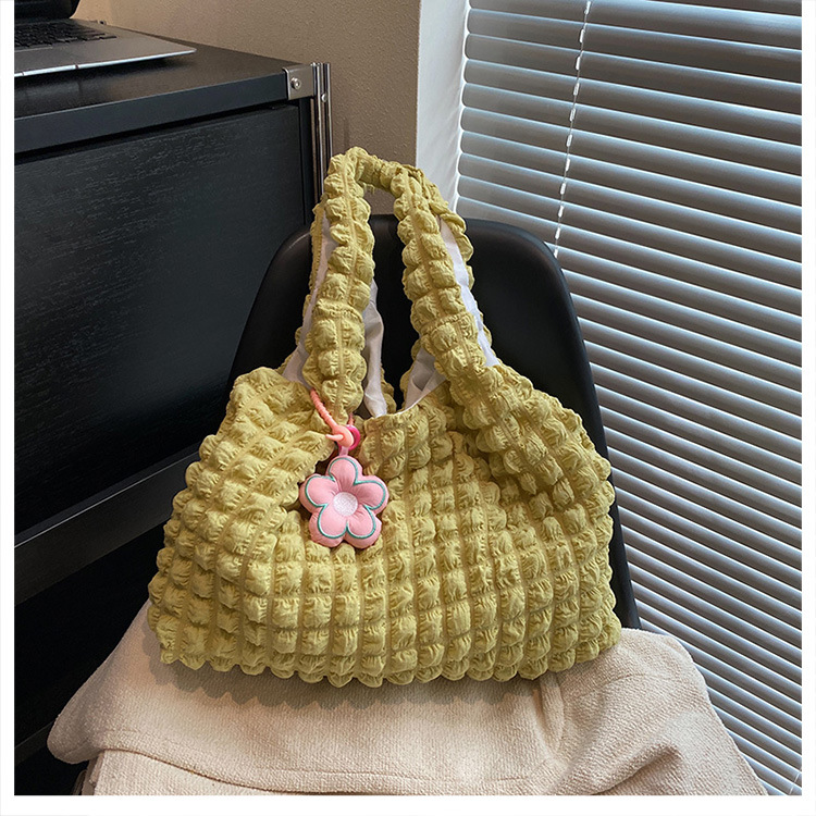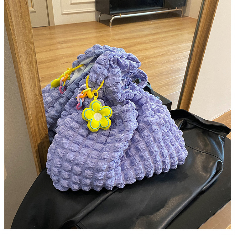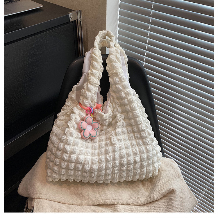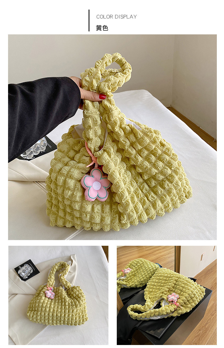 새로운 꽃 달콤한 토트 백 대용량 간단한 어깨 핸드백을 2023 여성을위한 신선한 주름 거품 가방