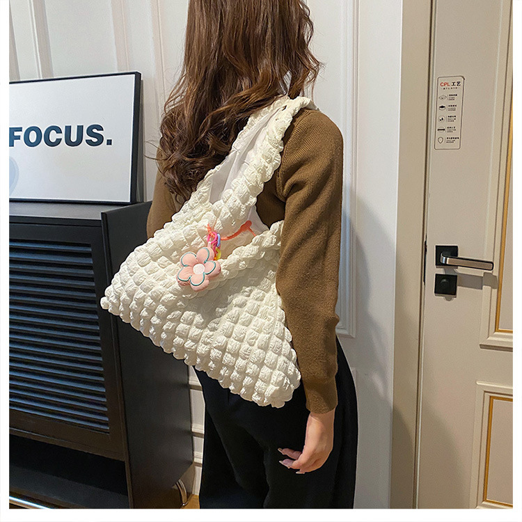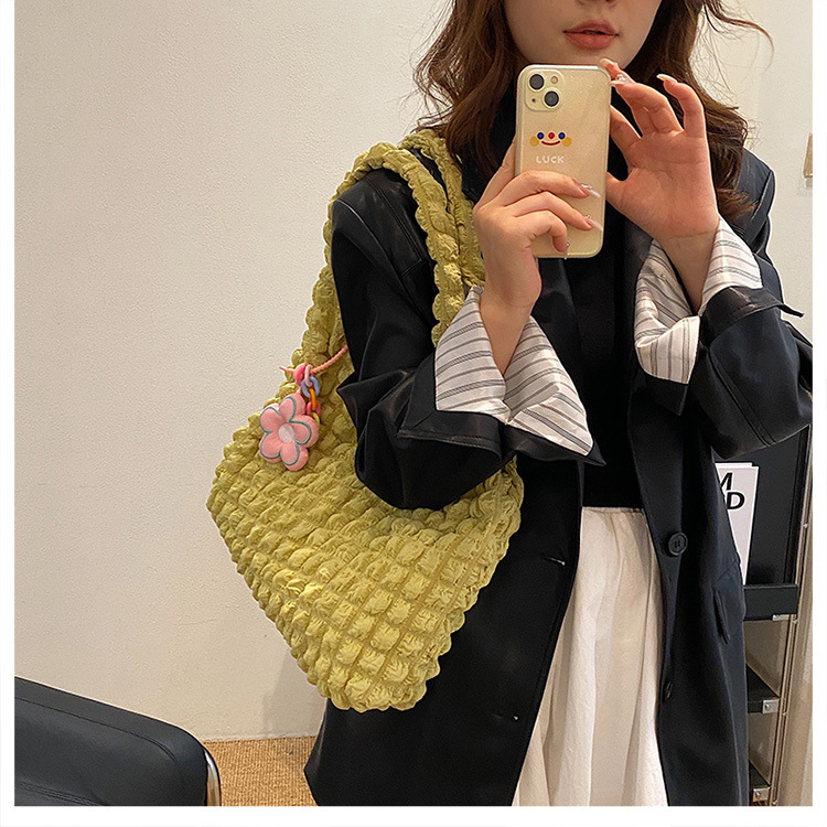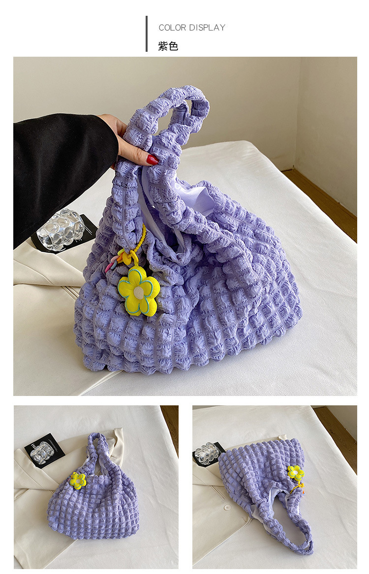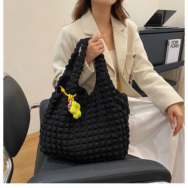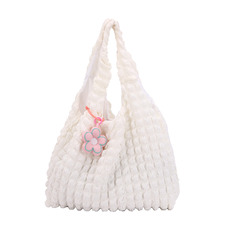 새로운 꽃 달콤한 토트 백 대용량 간단한 어깨 핸드백을 2023 여성을위한 신선한 주름 거품 가방