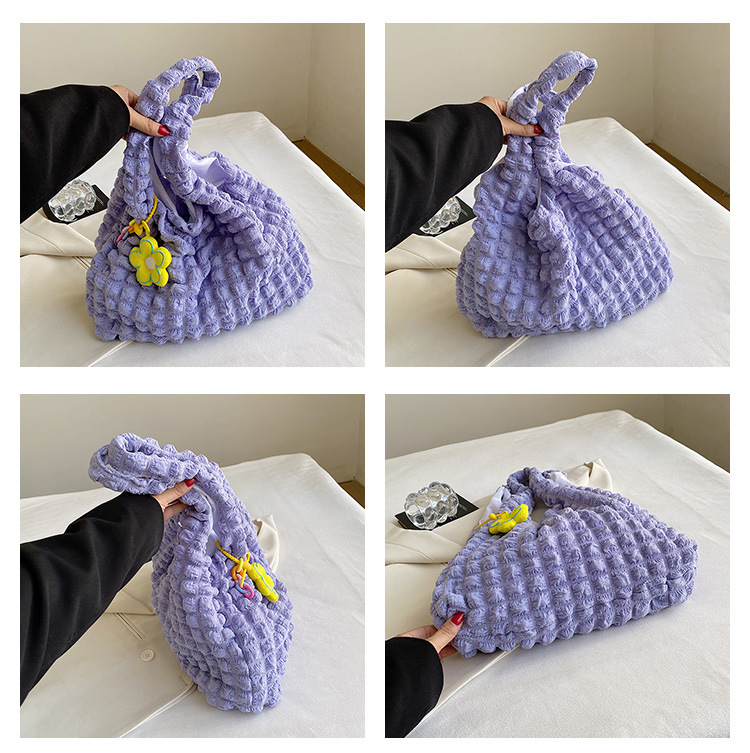 새로운 꽃 달콤한 토트 백 대용량 간단한 어깨 핸드백을 2023 여성을위한 신선한 주름 거품 가방스토어 가기