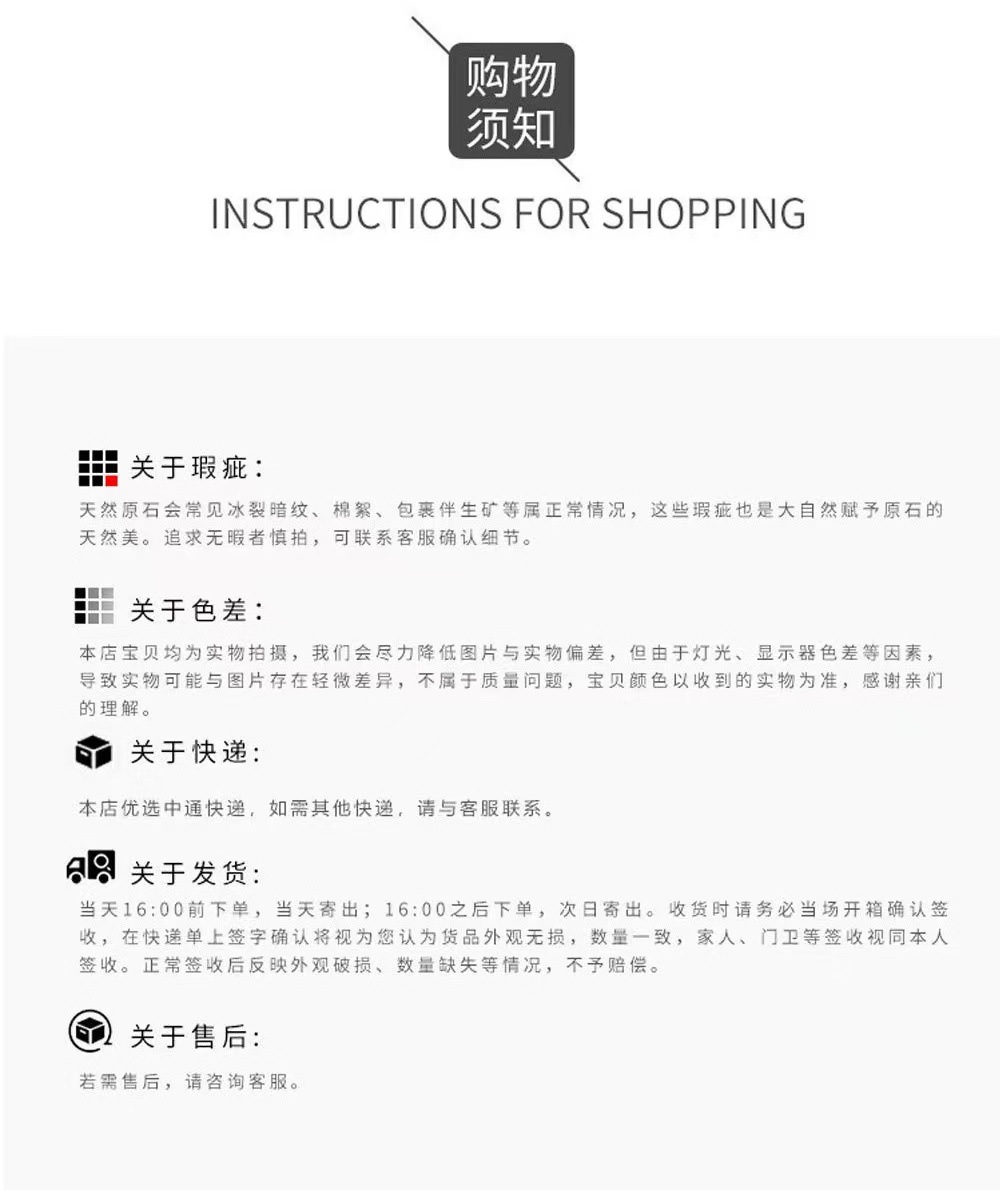 [备注]:天然且并非宝石级别矿料。所谓矿缺矿坑、裂纹白纹等情况均有存在,这是非常正常的。