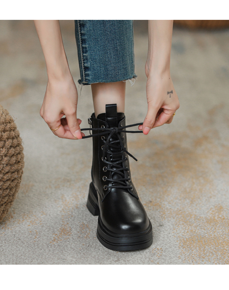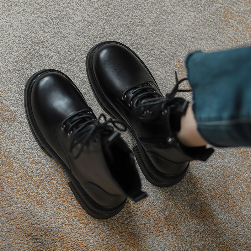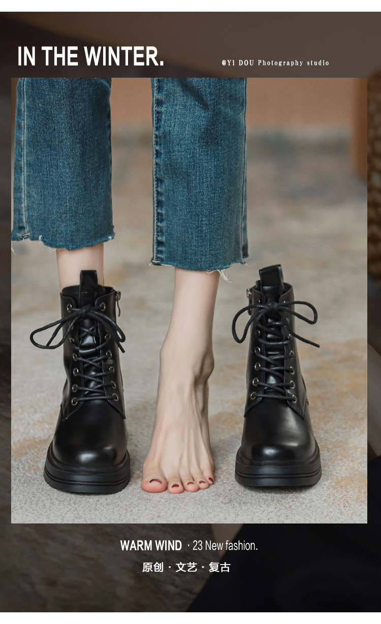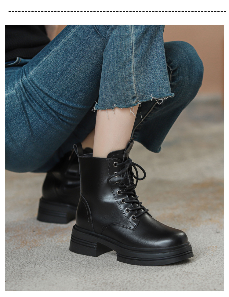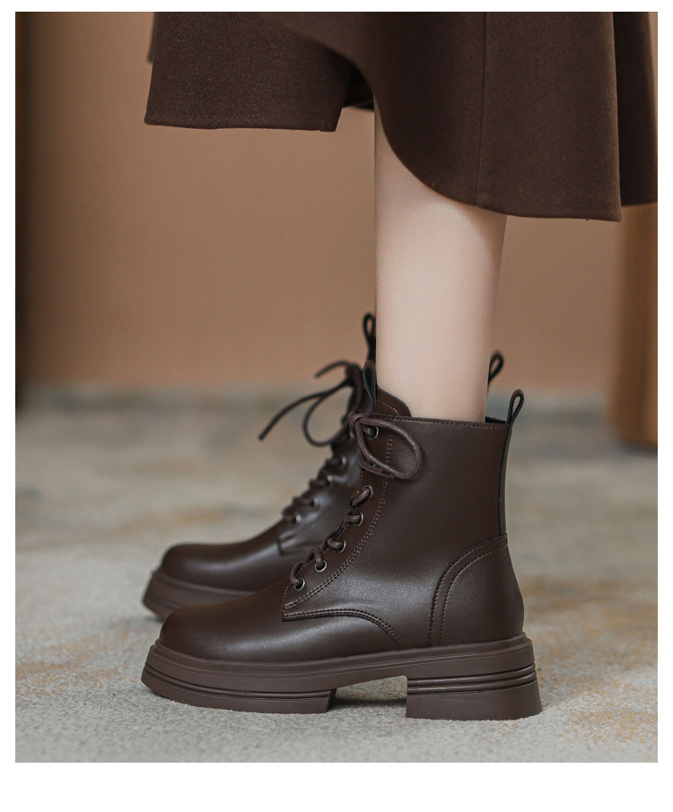 내부 키높이 마틴 부츠 여성용 영국 스타일 2025 신상 가을 겨울용 플러스 벨벳 브이컷 브라운 레트로 숏부츠스토어 가기