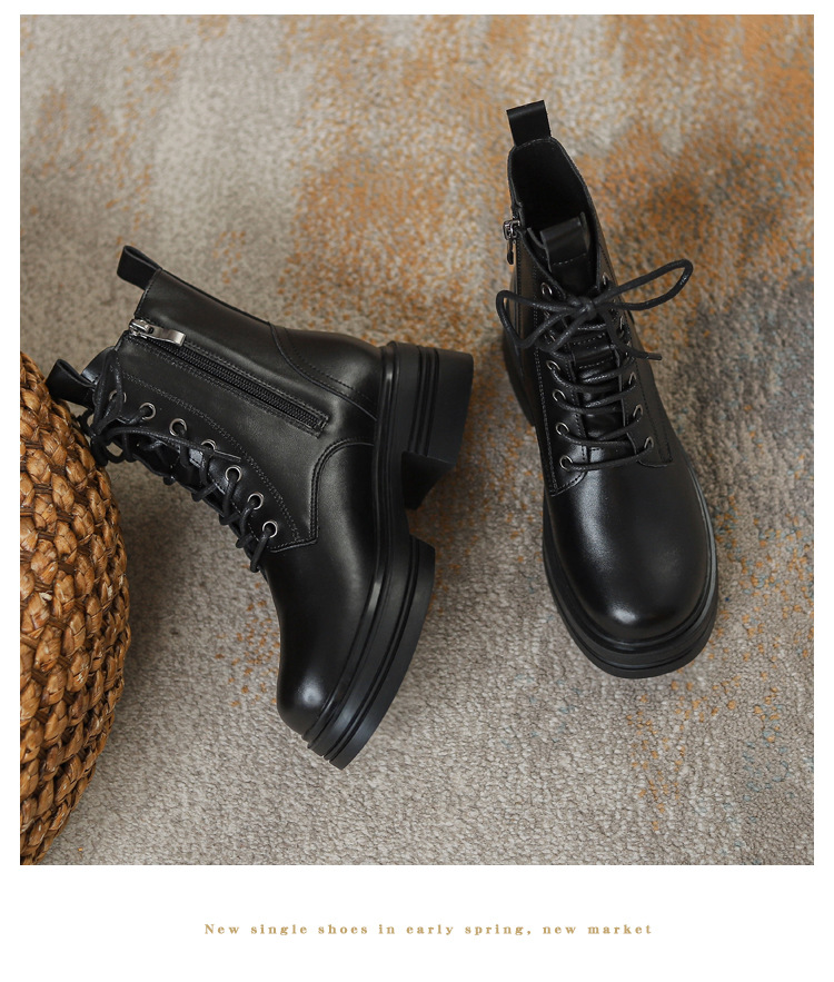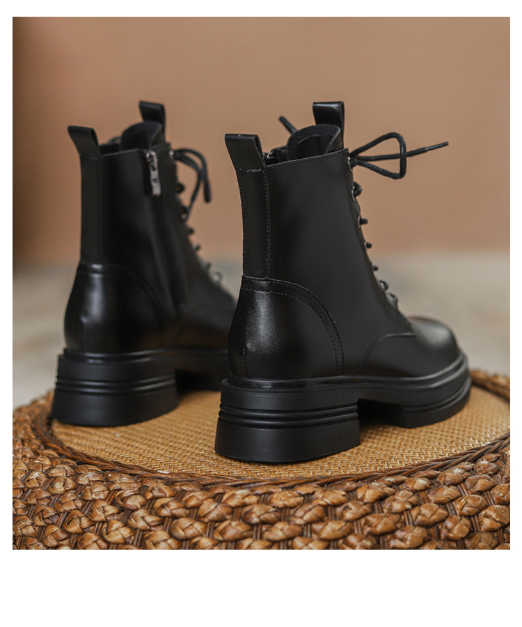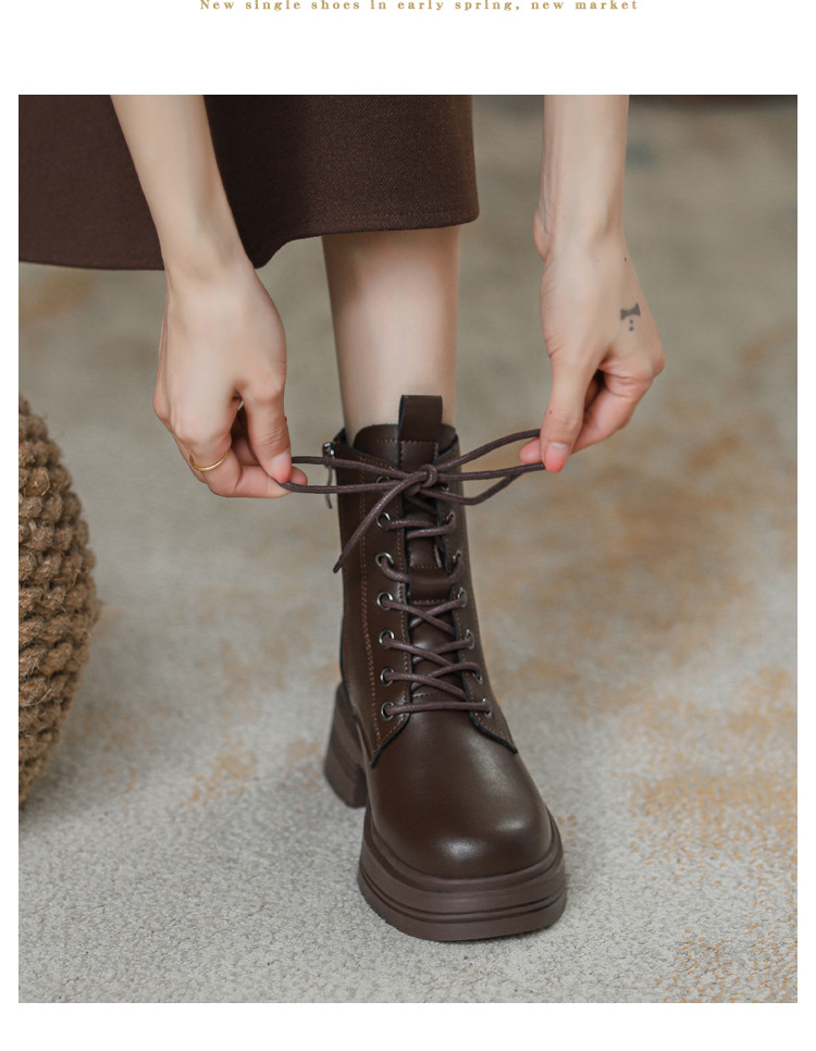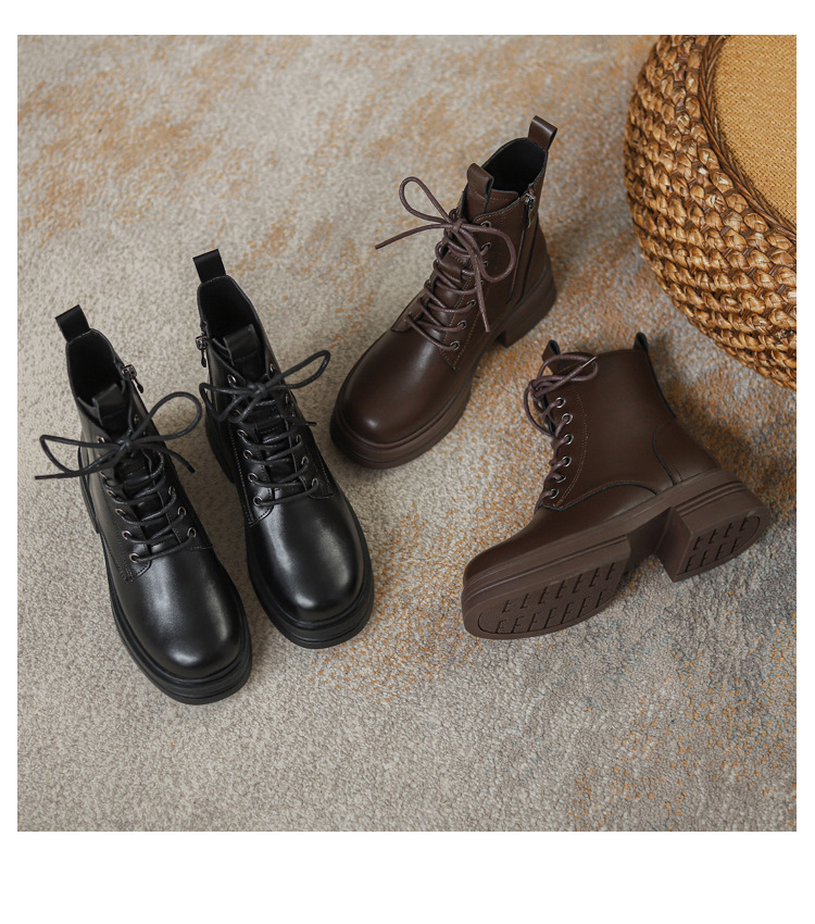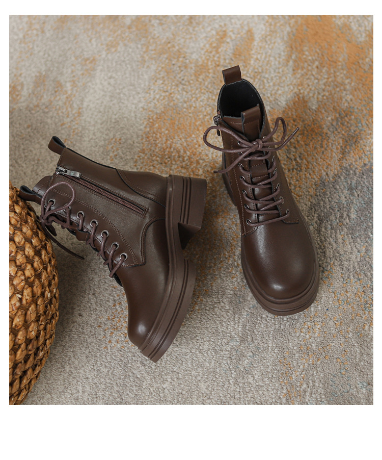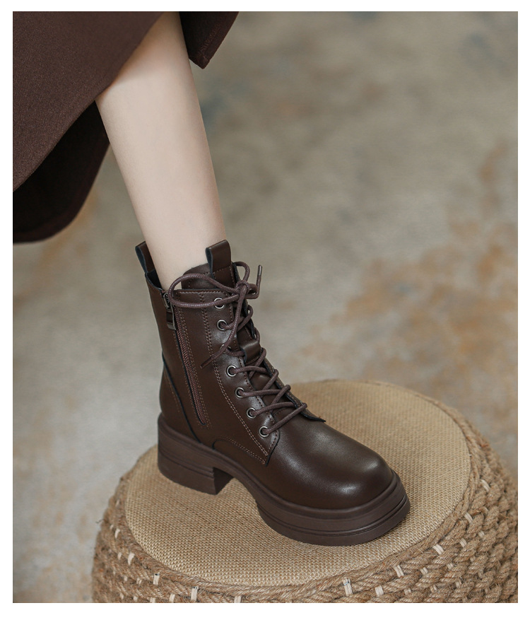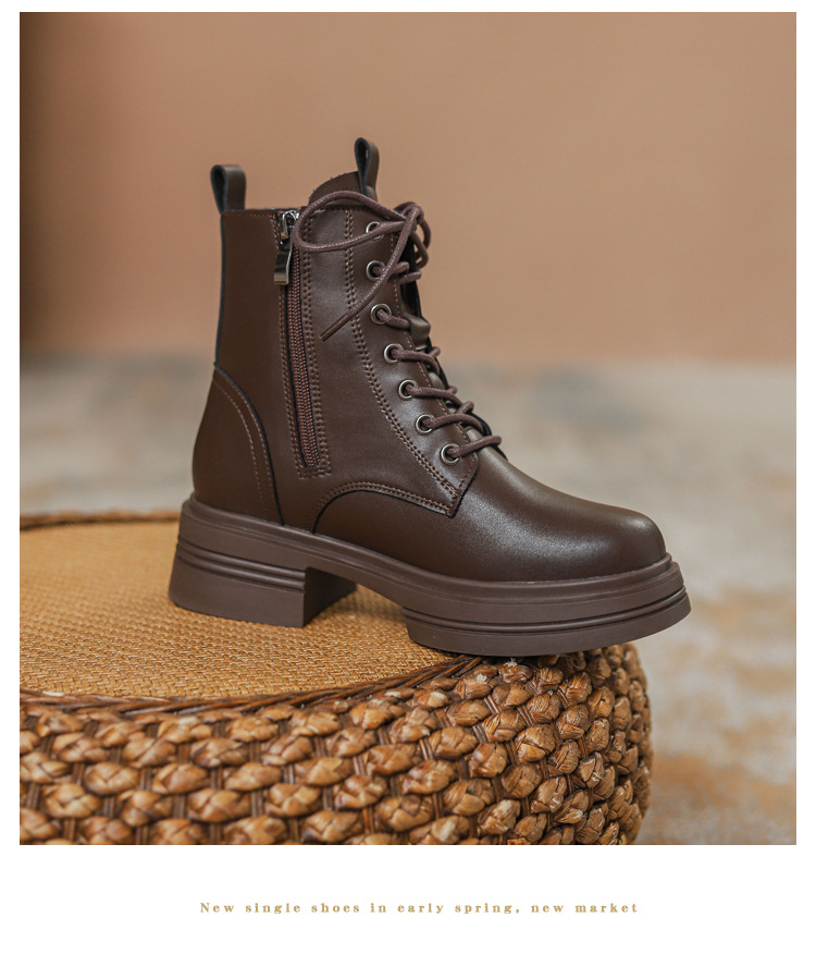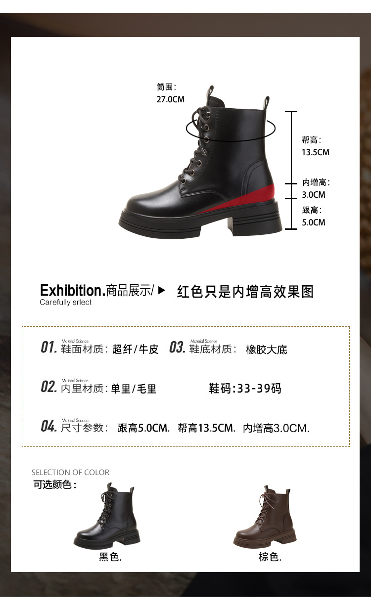 내부 키높이 마틴 부츠 여성용 영국 스타일 2025 신상 가을 겨울용 플러스 벨벳 브이컷 브라운 레트로 숏부츠