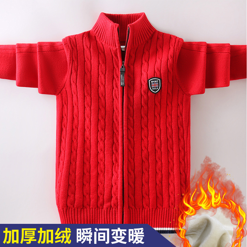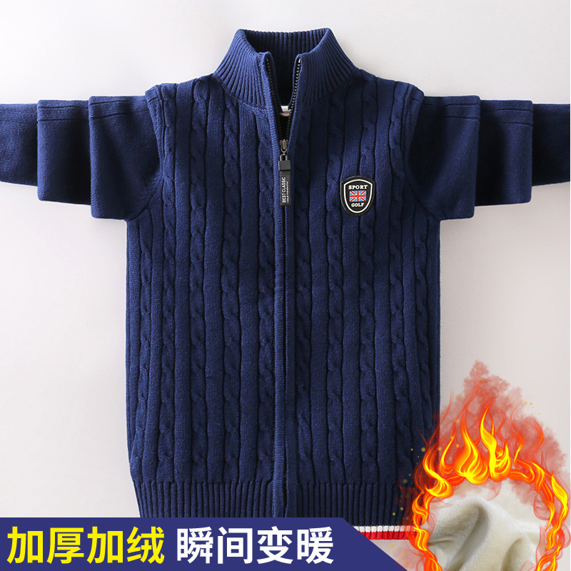 소년과 소녀 스웨터 풀오버 복고풍 미디어와 큰 아이들 겨울 기모 두껍게 뒤틀린 면화 스웨터 소년 유행