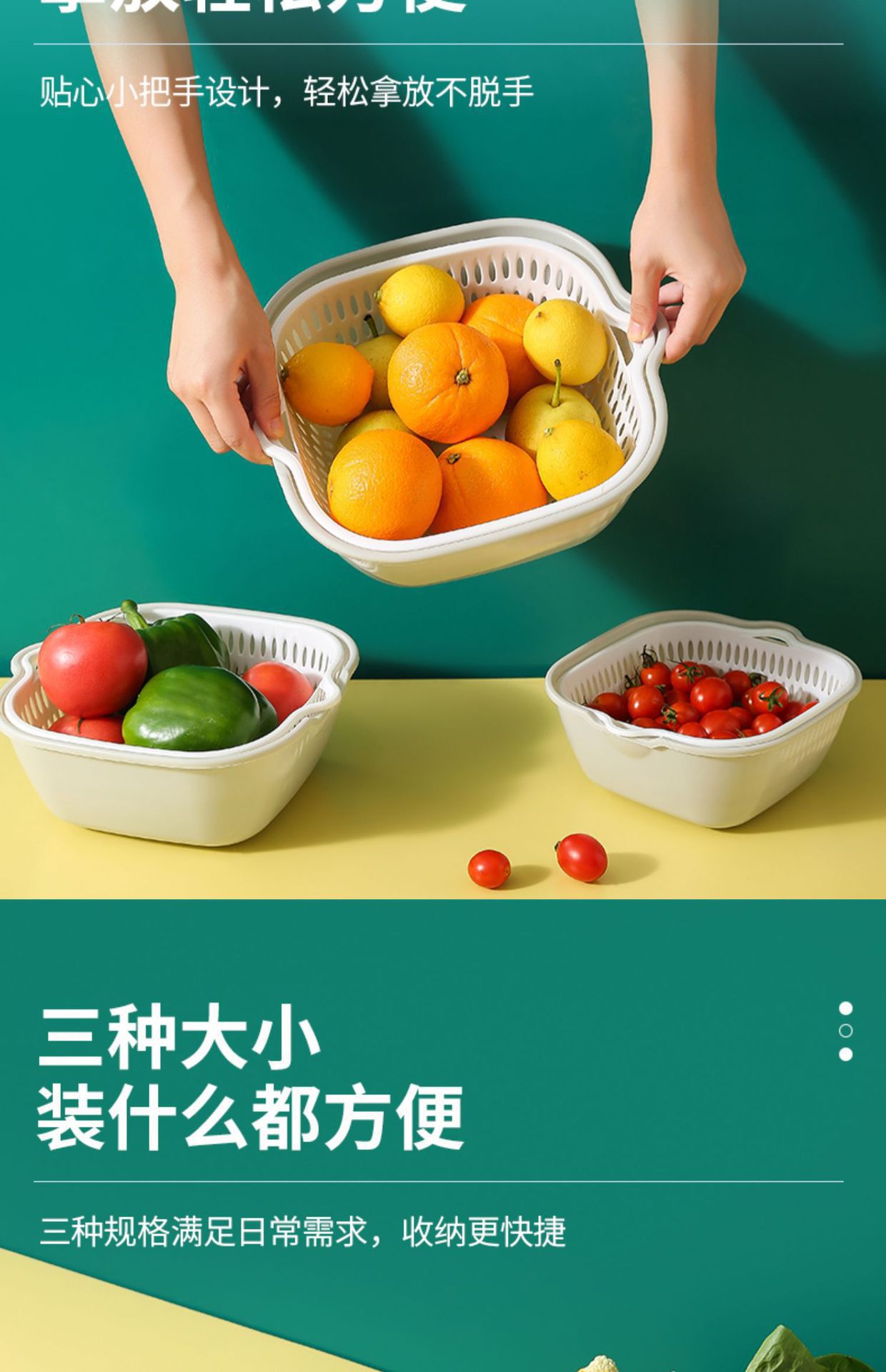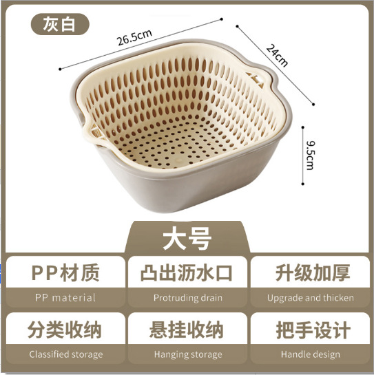 더블 레이어 배수 바구니 다기능 플라스틱 야채 세척 분지 주방 물방울 세척 바구니 저장 스낵 과일 플레이트 도매