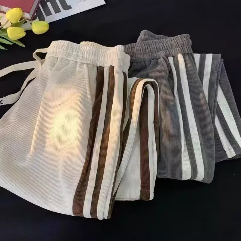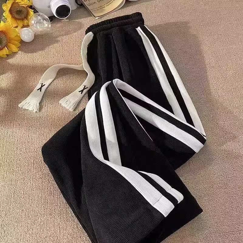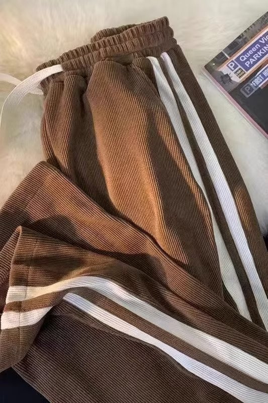 2024 봄과 가을 코듀로이 바지 남자 유행 조커 느슨한 사이드 스트라이프 대비 캐주얼 스트레이트 바지 도매스토어 가기