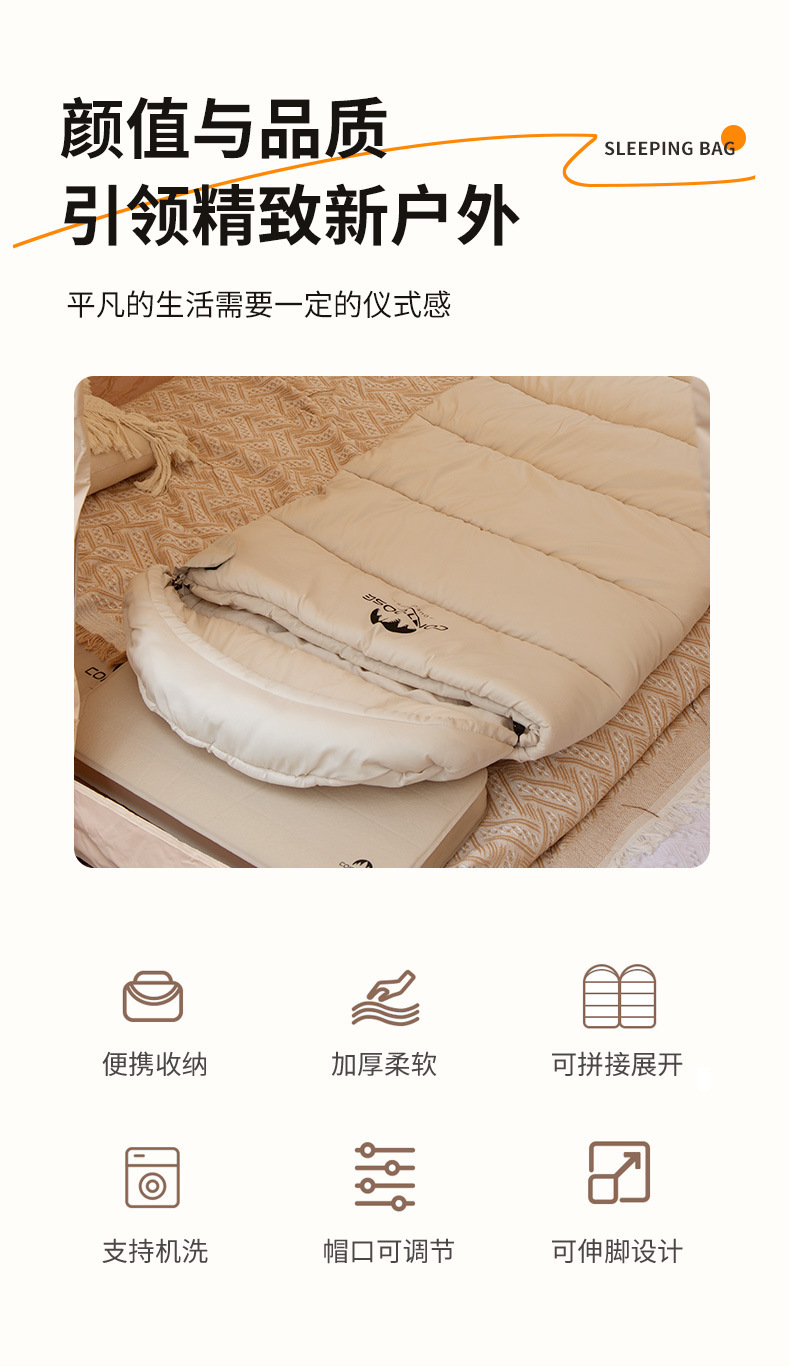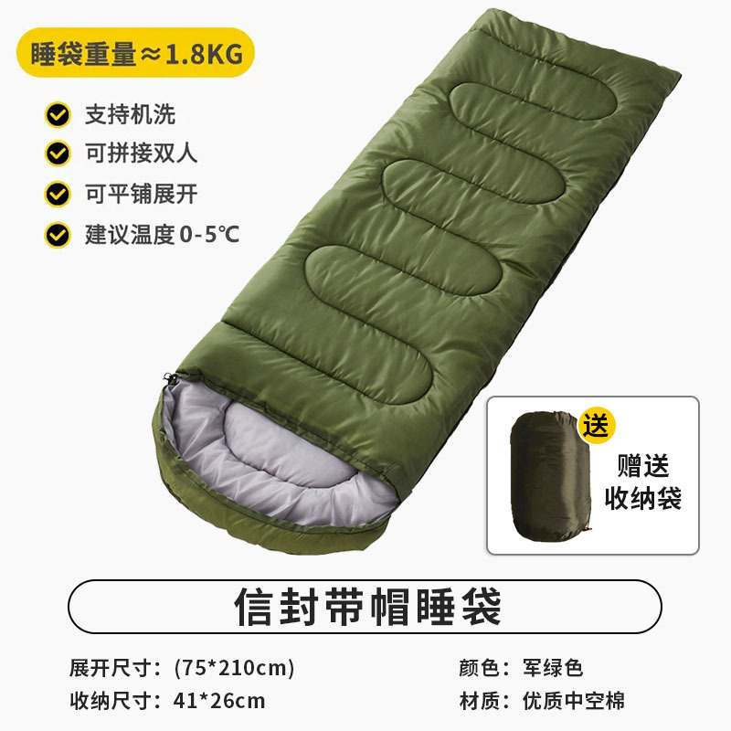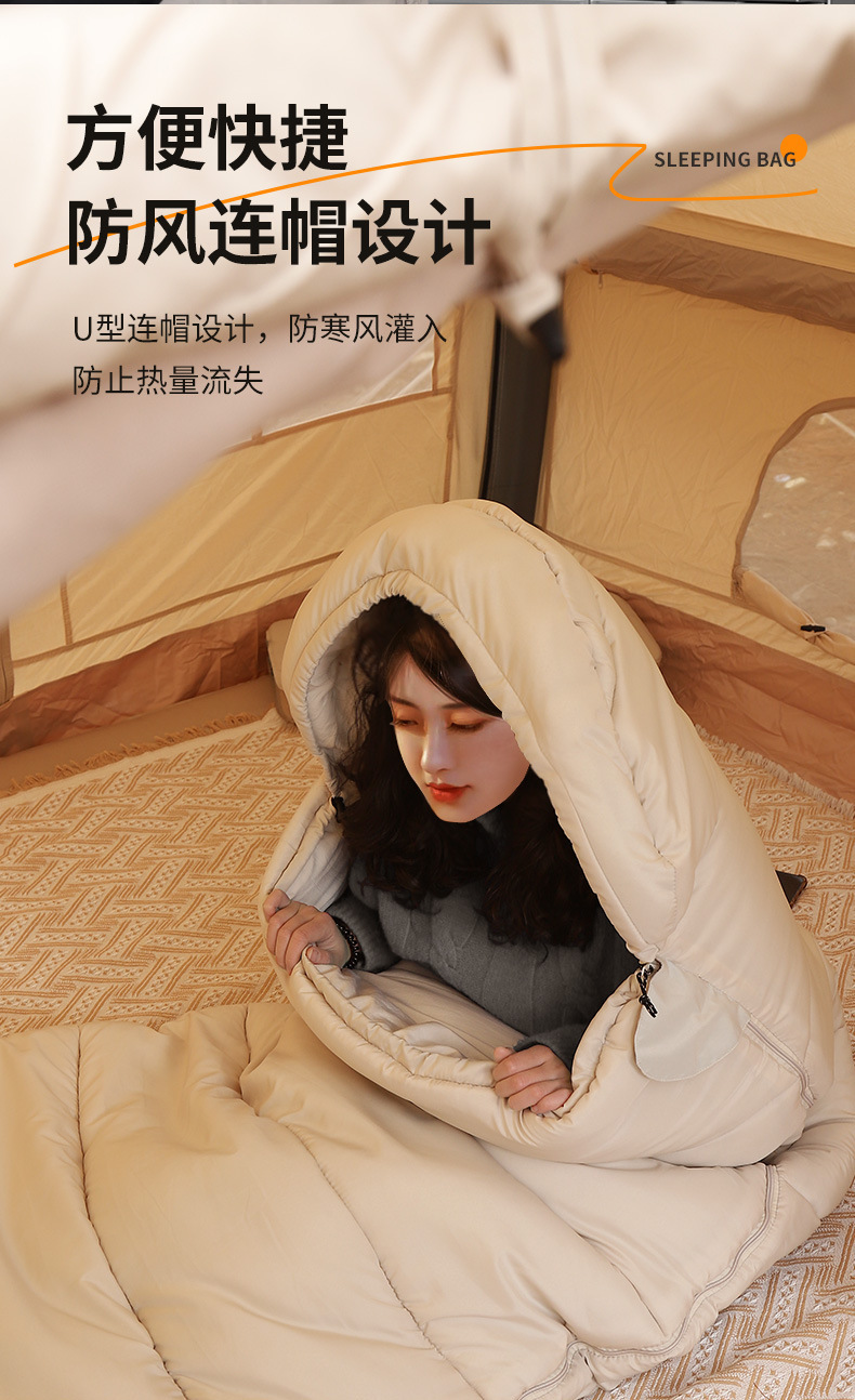 겨울 두꺼운 방한 야외 캠핑 침낭 휴대용 따뜻한 사무실 캠핑 점심 휴식 이불 이중 목적스토어 가기