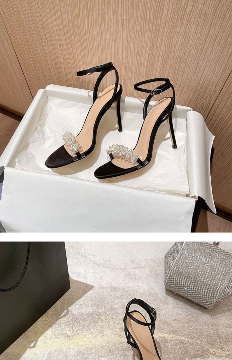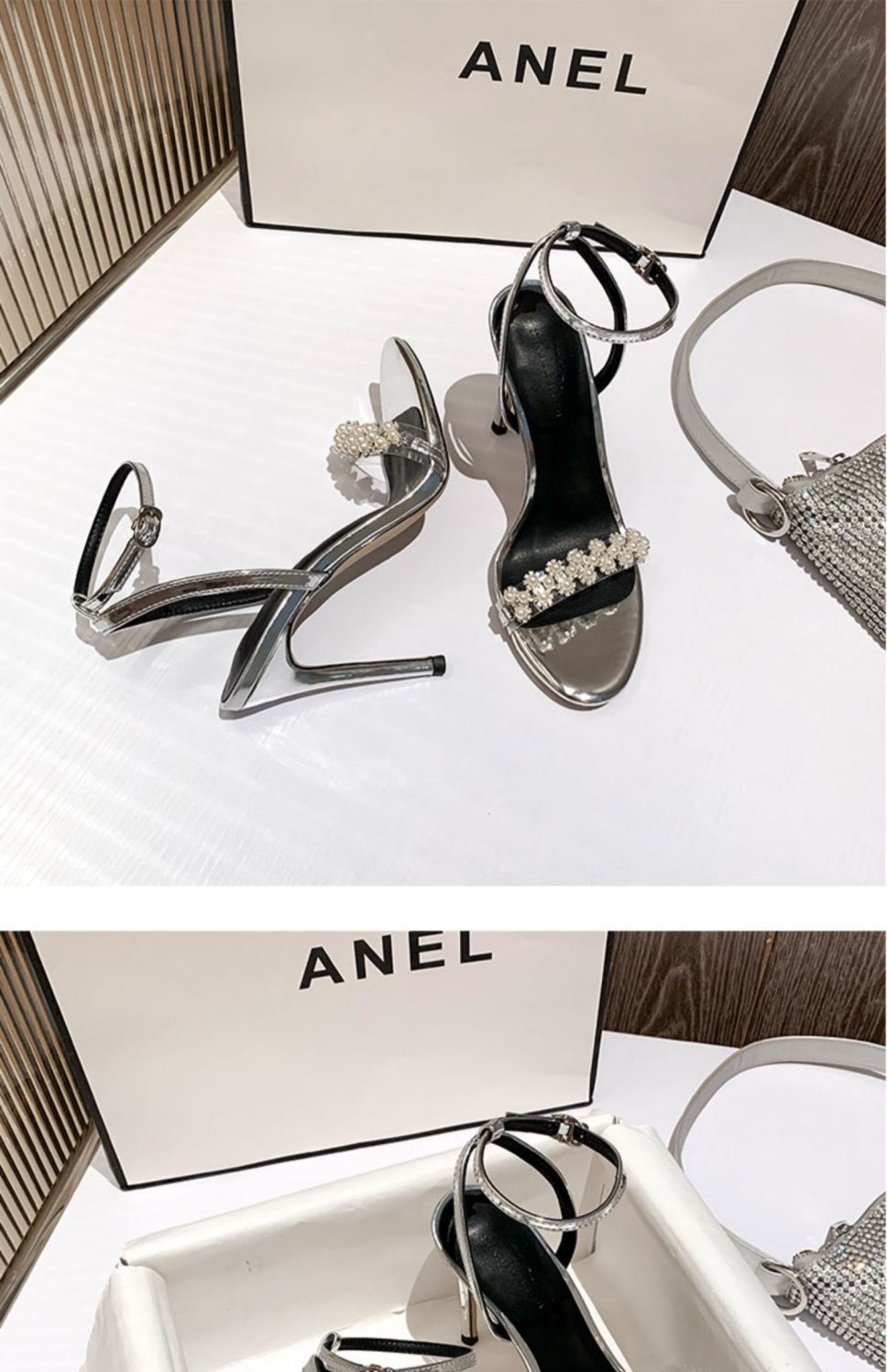 펄 스틸레토 힐 하이힐 2023 신여름 유지에 프라이드 스트리트 원피스 오픈 발가락 스트랩 샌들 여성용 스틸레토 힐스토어 가기
