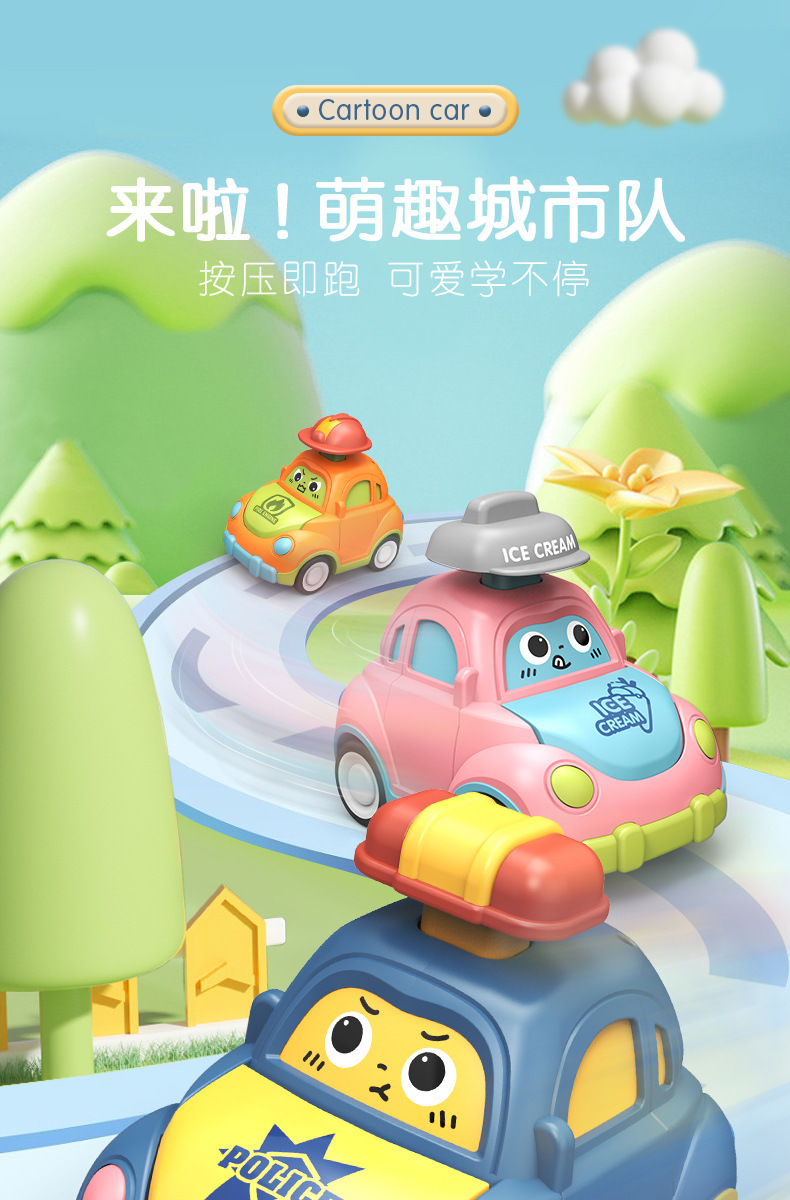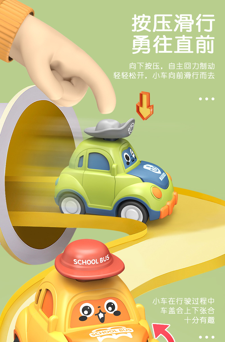 어린이 장난감 자동차를 운전하는 만화 표정 프레스 차 재미있는 모자 자동차 관성을 뒤로 당겨 어린이 선물스토어 가기