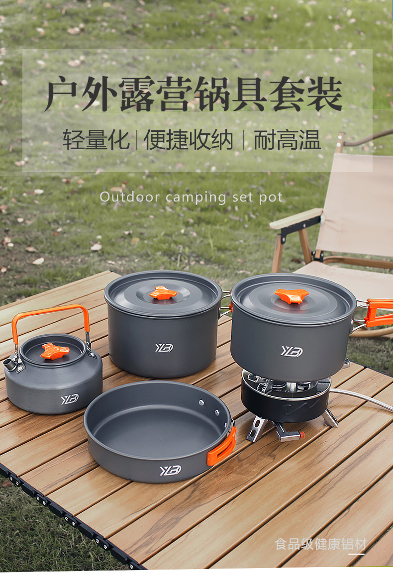 야외 캠핑 주전자, 초경량 휴대용 냄비 세트, 소형 냄비, 캠핑 및 피크닉 겸용 휴대용 알루미늄 합금 식기스토어 가기